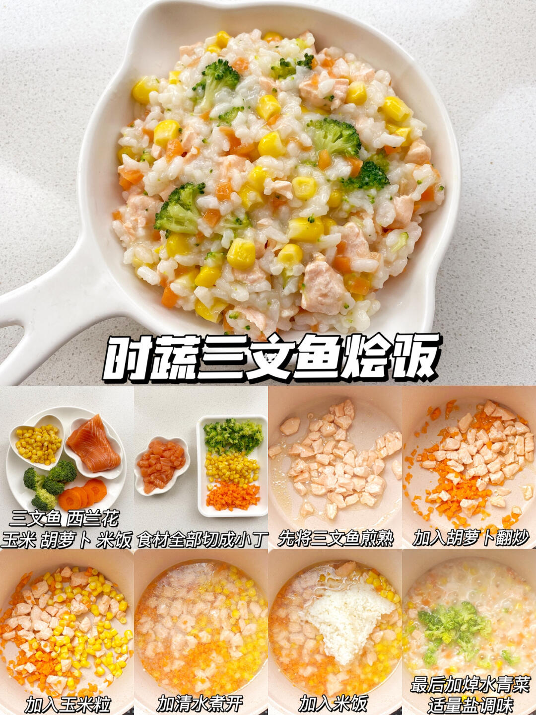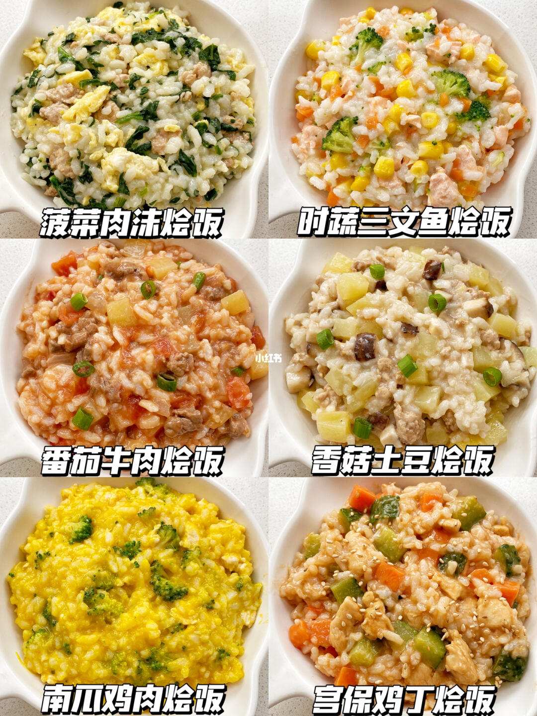 🌟烩饭的口感相比起炒饭要软,口感和食材上10个月以上的宝宝就可以吃了。⚠️1岁以下的宝宝不要放调味料哦,1岁以上可以适量添加。