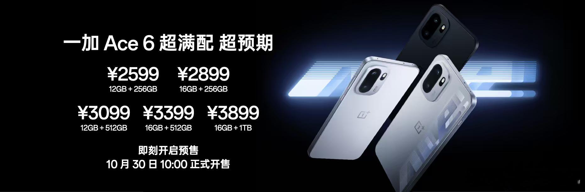 一加Ace6售价 2599元起!10月30日10:00全渠道正式开售,在追求极致游戏体验方面,一加Ace6就是同档位的终极答案! 一加Ace6一加15和Ace6新品发布一加Ace6真香