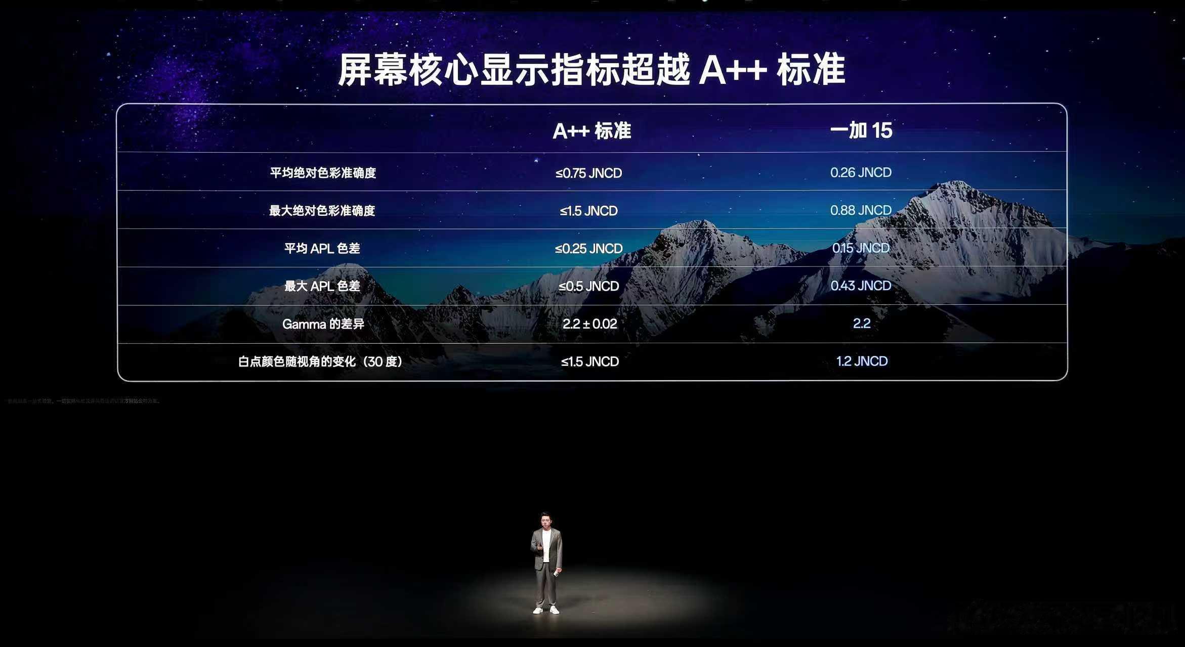 第三代东方屏的屏幕素质也全方面领先,屏幕几大核心显示指标上,超越了DisplayMate A++标准。一加 15 行业首发京东方定制的X3发光材料和Display P3屏幕芯片,显著提升显示效果;每一块东方屏都会经过一加自研显示科学产线校准,这是中国唯一显示科学产线,经过一对一校准,能最大成程度保障屏幕显示效果的一致性。一加15和Ace6新品发布一加15