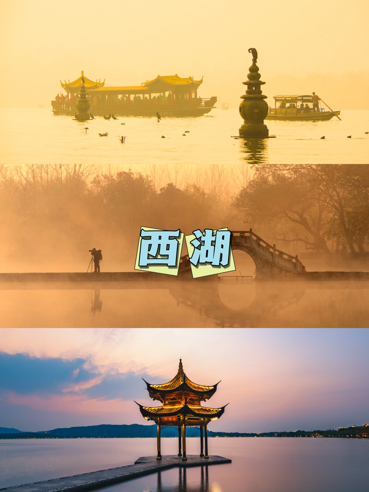 ✅推荐理由:南山路非常适合在落日时分拍摄,湖光山色俱得,全程沿着西湖边走,波光荡漾。推荐从净慈寺一路往湖滨走,最后在集贤亭拍个日落!