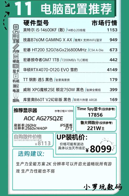 爆肝半个月,根据当下硬件行情整理出当下性价比的装机方案,有游戏配置也有生产力配置!小白可以闭眼抄作业,搭配合理,最起码不吃亏,强烈建议小白收藏!
