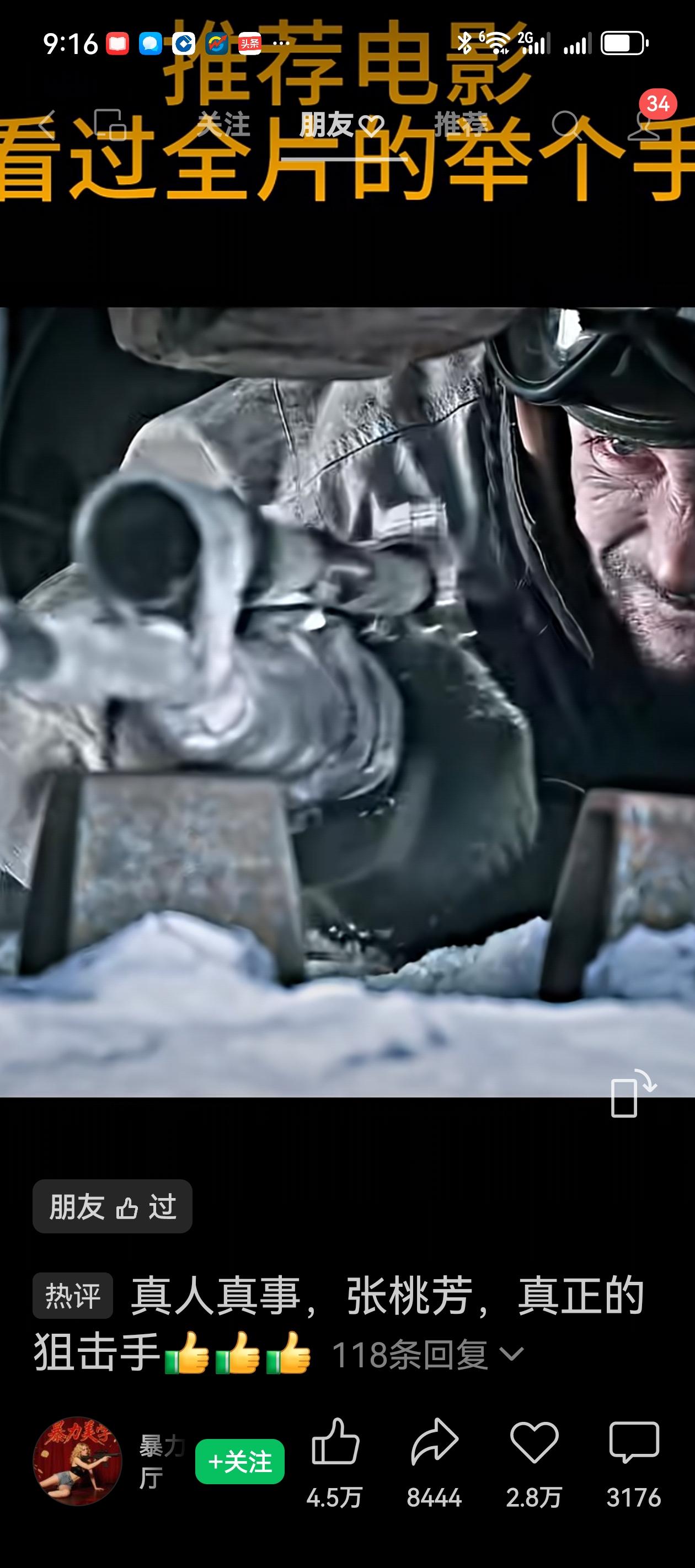 张桃芳在上甘岭战役中,436发子弹击毙214名敌人,令美军闻风丧胆。 张桃芳(1931年7月4日—2007年10月29日),江苏兴化人,中国人民志愿军著名狙击手、被誉为“志愿军神枪手”、“冷枪英雄”、“上甘岭狙神”。 1953年在上甘岭战役中,使用莫辛纳甘步枪,32天内以436发子弹击毙214名敌军,创志愿军单人狙击最高纪录。 荣誉:荣立特等功,获“二级狙击英雄”称号及朝鲜一级国旗勋章。 他1954年调入空军,成为歼击机飞行员,退役后任防空部队参谋长。 2007年10月29日于英雄在山东潍坊逝世,享年77岁。 请朋友们留下一句:致敬英雄[祈祷][祈祷][祈祷][祈祷][祈祷][祈祷]