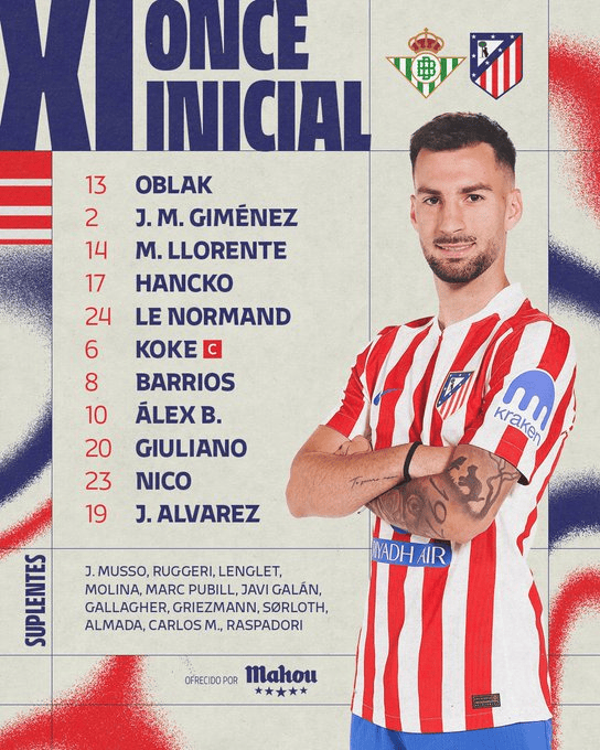 剑南春首发-贝蒂斯vs马竞:小蜘蛛、安东尼领衔,巴埃纳出战