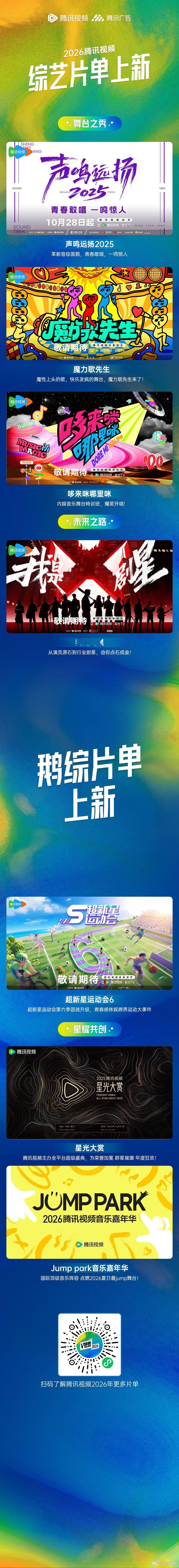 鹅厂2026综艺片单 哇塞!鹅厂2026综艺片单一公布,瞬间成为焦点!丰富多元的类型,精准拿捏观众喜好,从解压到冒险,从文化到趣味,样样俱全,期待值已飙升至顶点!