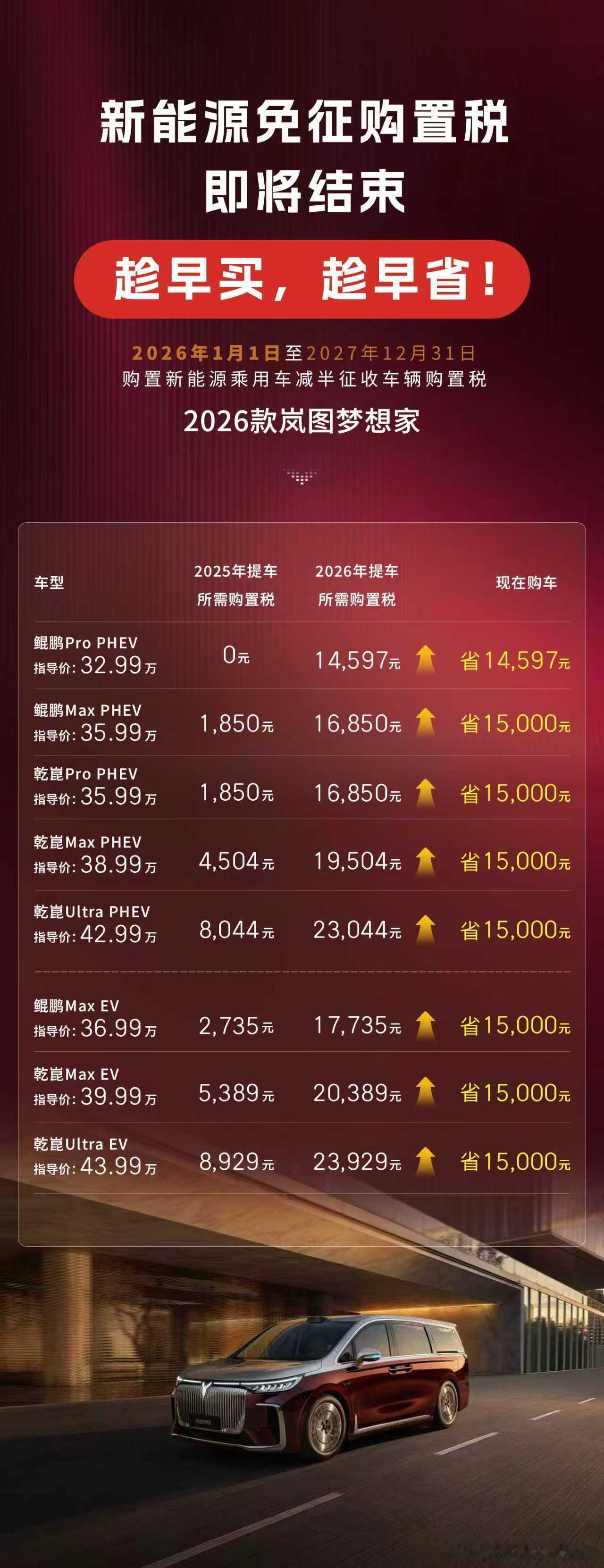 新能源购置税2026款岚图梦想家省钱优惠倒计时