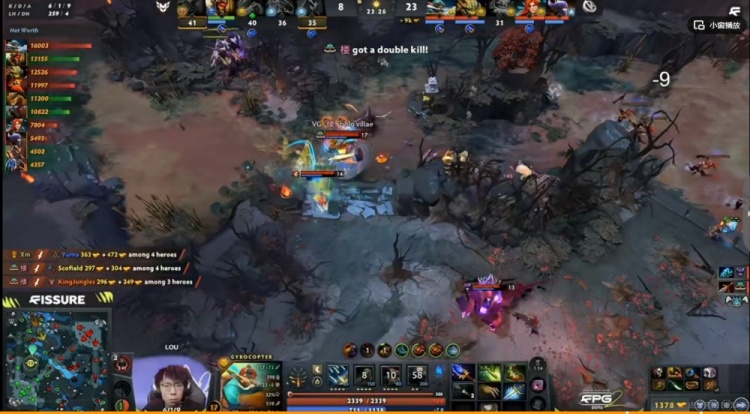 [9分钟]下路Heroic想借助沉默大动手,但是反手Ws马尔斯框大三个,Lou飞机再次赶到补充输出拿下双杀!这波VG又是0换3!打完之后领先3K了!