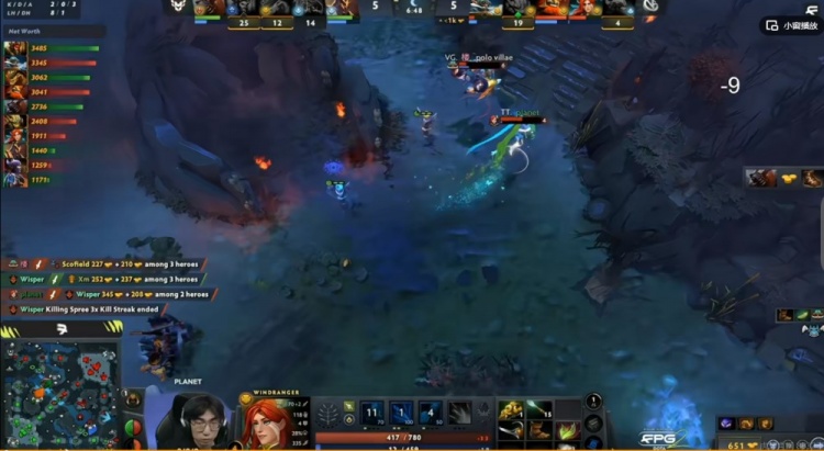 [23分钟]上路团Wisper兽王吼配合队友强杀Ws马尔斯,但是马尔斯临死之前框大,Lou飞机切入配合Xm沙王跳大解决了战斗!这波VG打出1换4!11K经济差了!