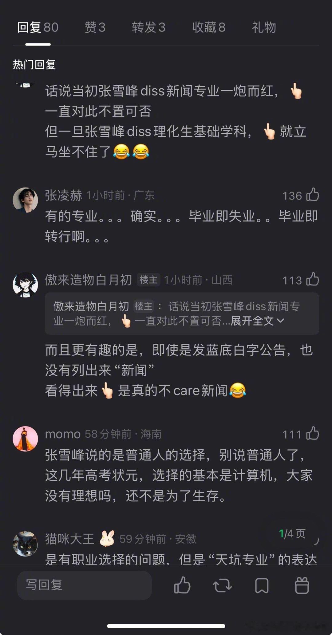 南方网评张雪峰。我的看法,不说其他的,就说今年大热的文科里的法学,信我,四年