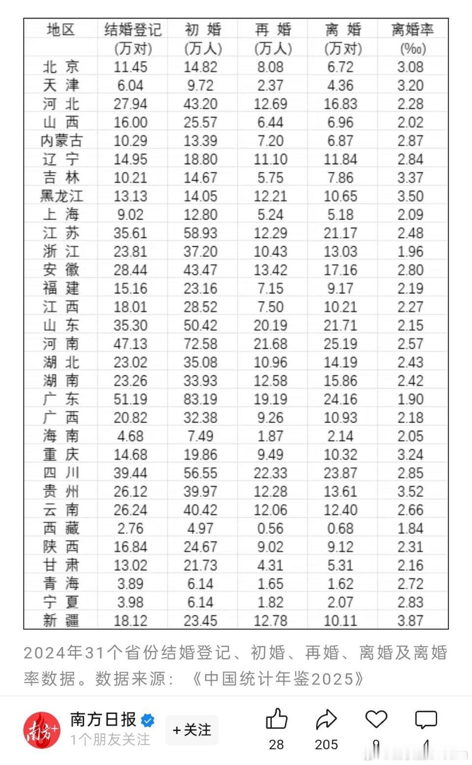 🔻中国最喜欢结婚的省,根本不用催婚。31省份婚姻数据公布了,又是广东人最喜欢结婚,已连续三年位居全国第一,为什么广东人的结婚意愿这么高?你们觉得是什么原因?[哆啦A梦吃惊][哆啦A梦吃惊]