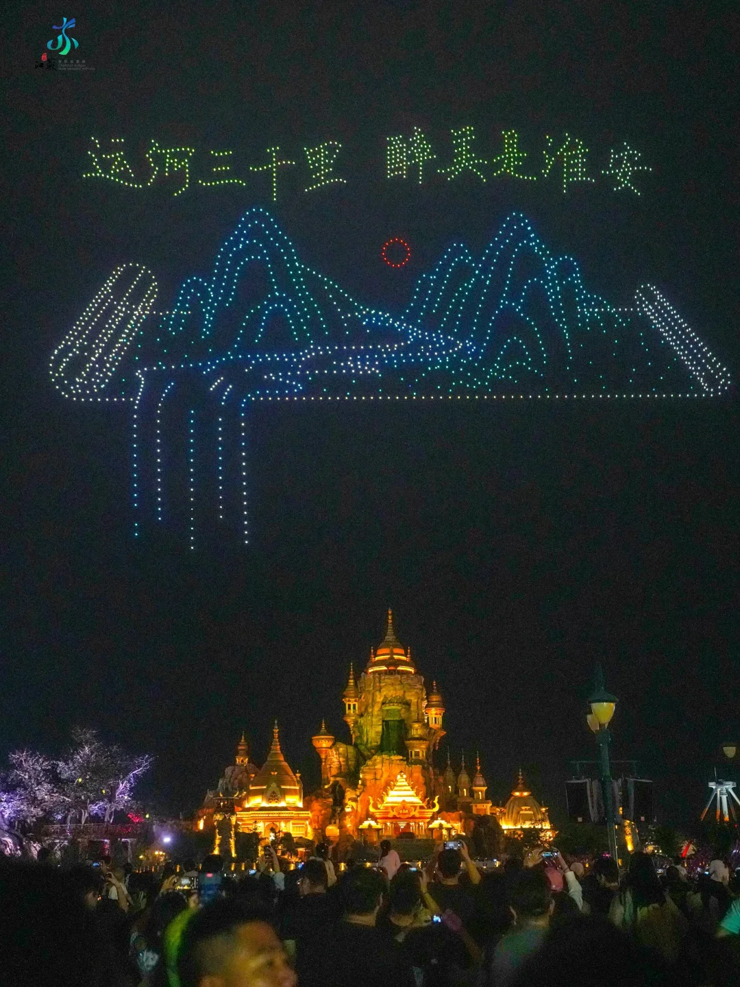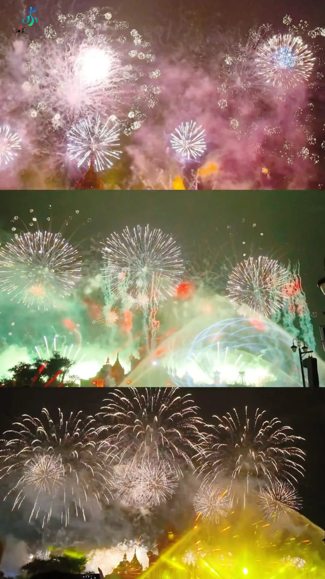 2️⃣无人机秀:20:00准时开始!上千架无人机在夜空拼出大圣、金箍棒…效果很恢宏!无人机结束紧接着就是烟花!水幕+特效+漫天烟花,最佳观赏点在唐镇北广场,烟花会在最后几分钟密集炸开😄,真的好看看!