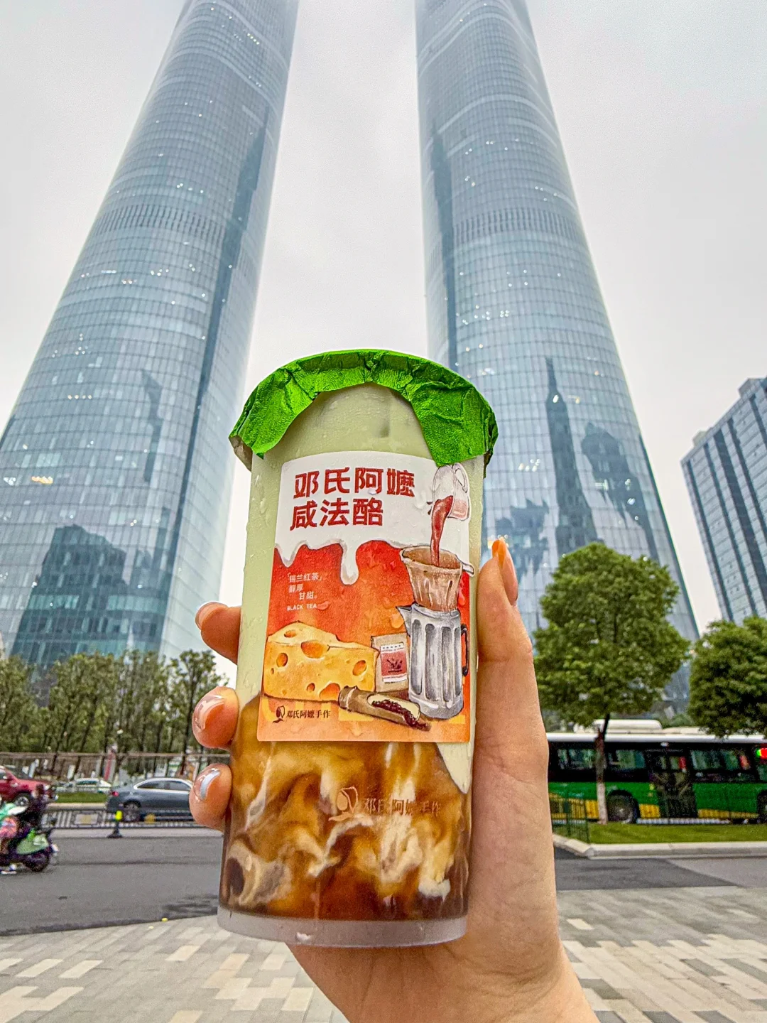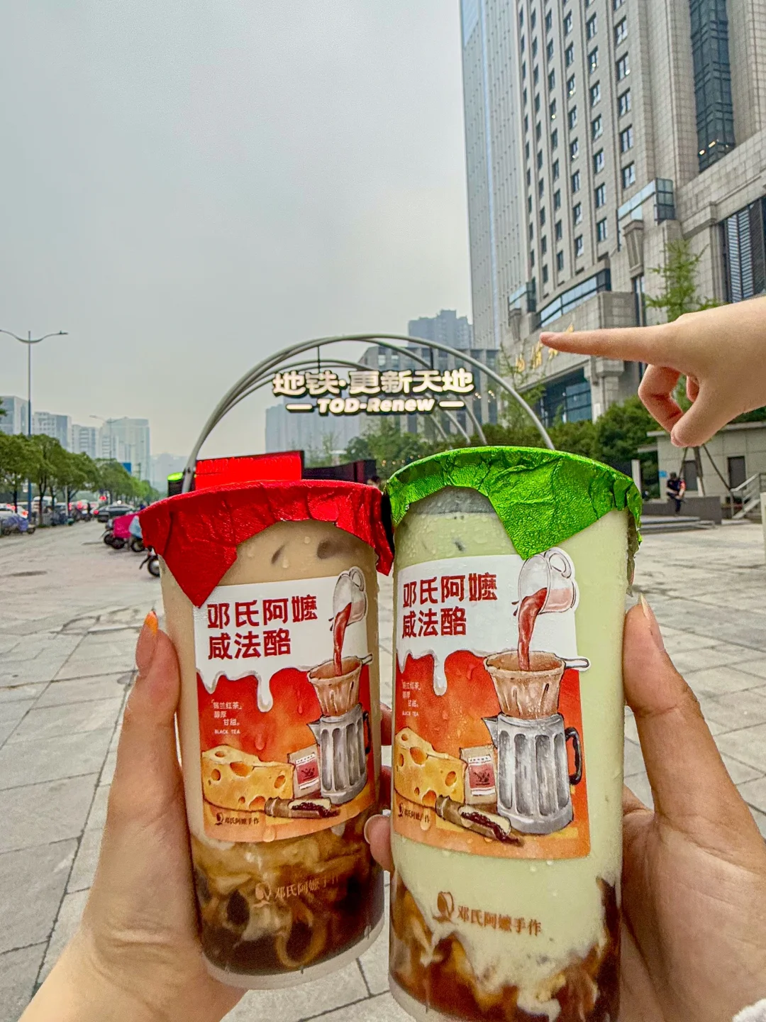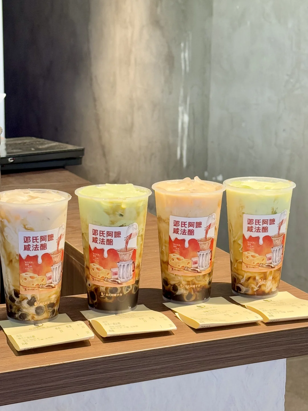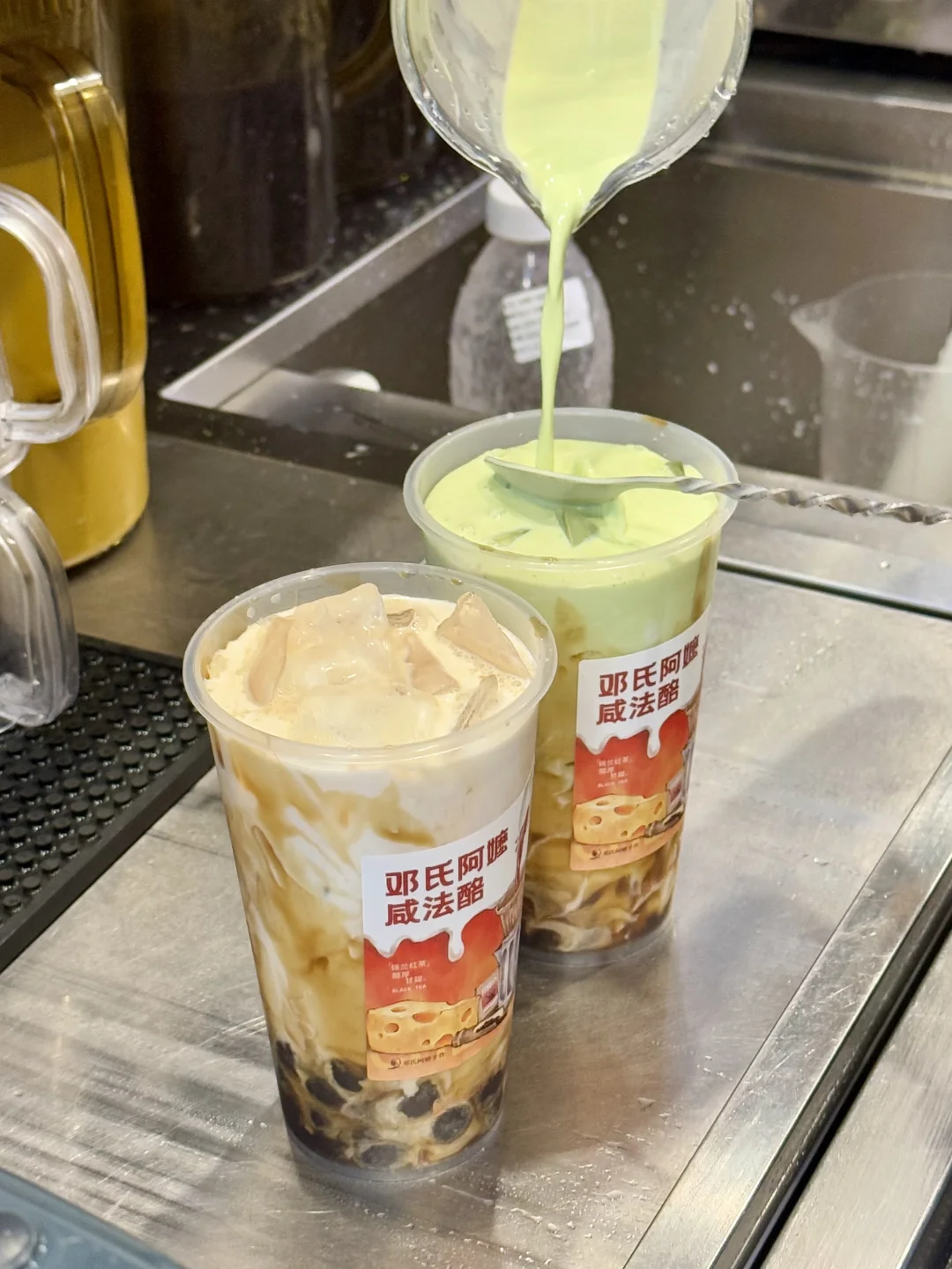 看别人喝可把我馋坏了!!终于在南昌也喝到了!!好好好好喝!!!排队一小时也值!! 泰式咸法酪和泰绿咸法酪都好喝!都是广西水牛奶➕手工黑糖珍珠➕咸法酪! 这两款在我心里难分伯仲🥹推荐三分糖!!!不会很甜~但是喝之前一定要搅拌均匀!! 📍邓氏阿嬤手作(地铁更新天地店)