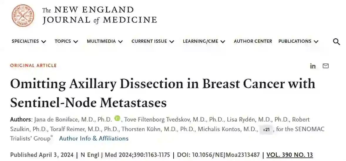 前哨淋巴结转移的乳腺癌患者可省略腋窝切除术