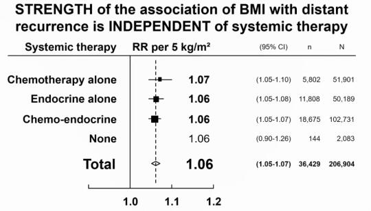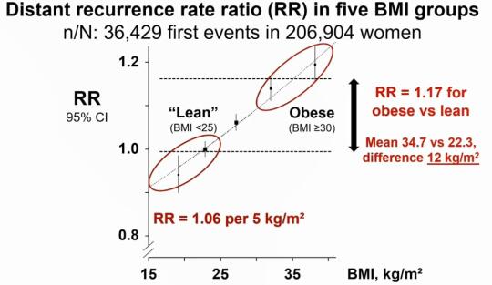 体重指数每增加5kg/m²,远处复发率增加6%[爆炸R]