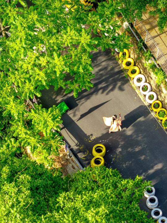 悬空栈道→矿洞小火车(温差大,夏日纳凉好去处)→滑滑梯→山野卡丁车