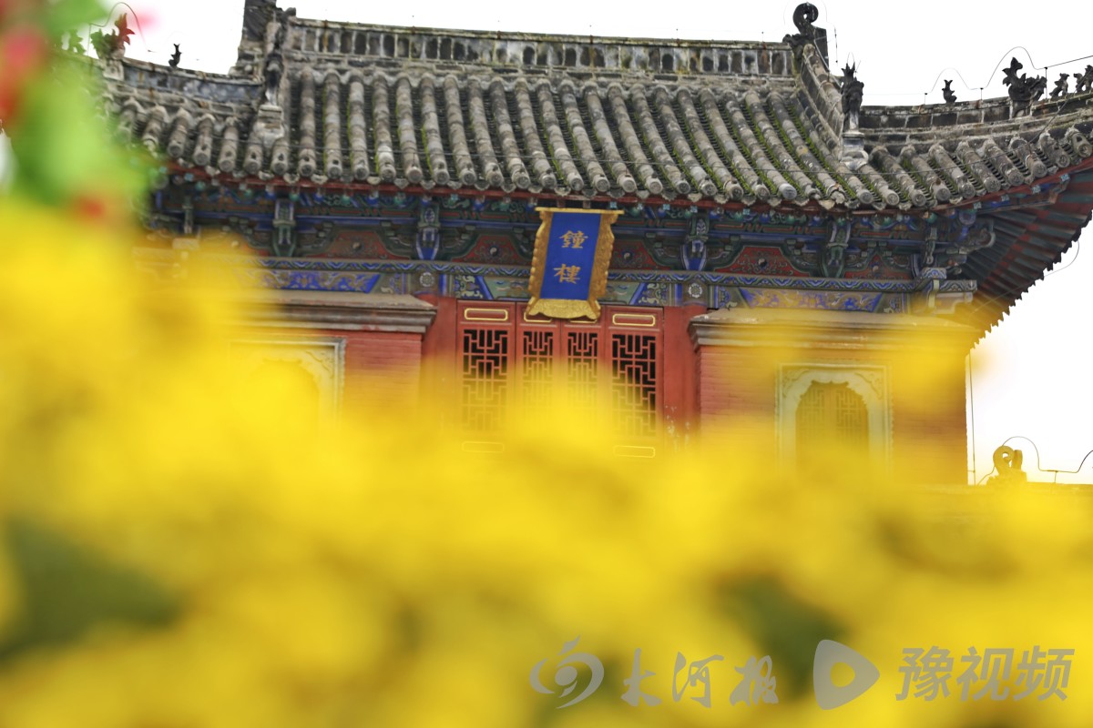 步入景区,映入眼帘的是五颜六色的菊花,深红、金黄、绯红、淡粉,色彩缤纷的菊花姿态万千,吸引着游客打卡拍照。清晨时分,有的花蕊中挂着晶莹的露珠,把菊花装扮得像宝石一样美丽;有的花骨朵含苞待放立在枝头,像亭亭玉立的娇羞少女;还有的如繁星点点,一片片、一簇簇与古建筑交相辉映,古朴典雅。