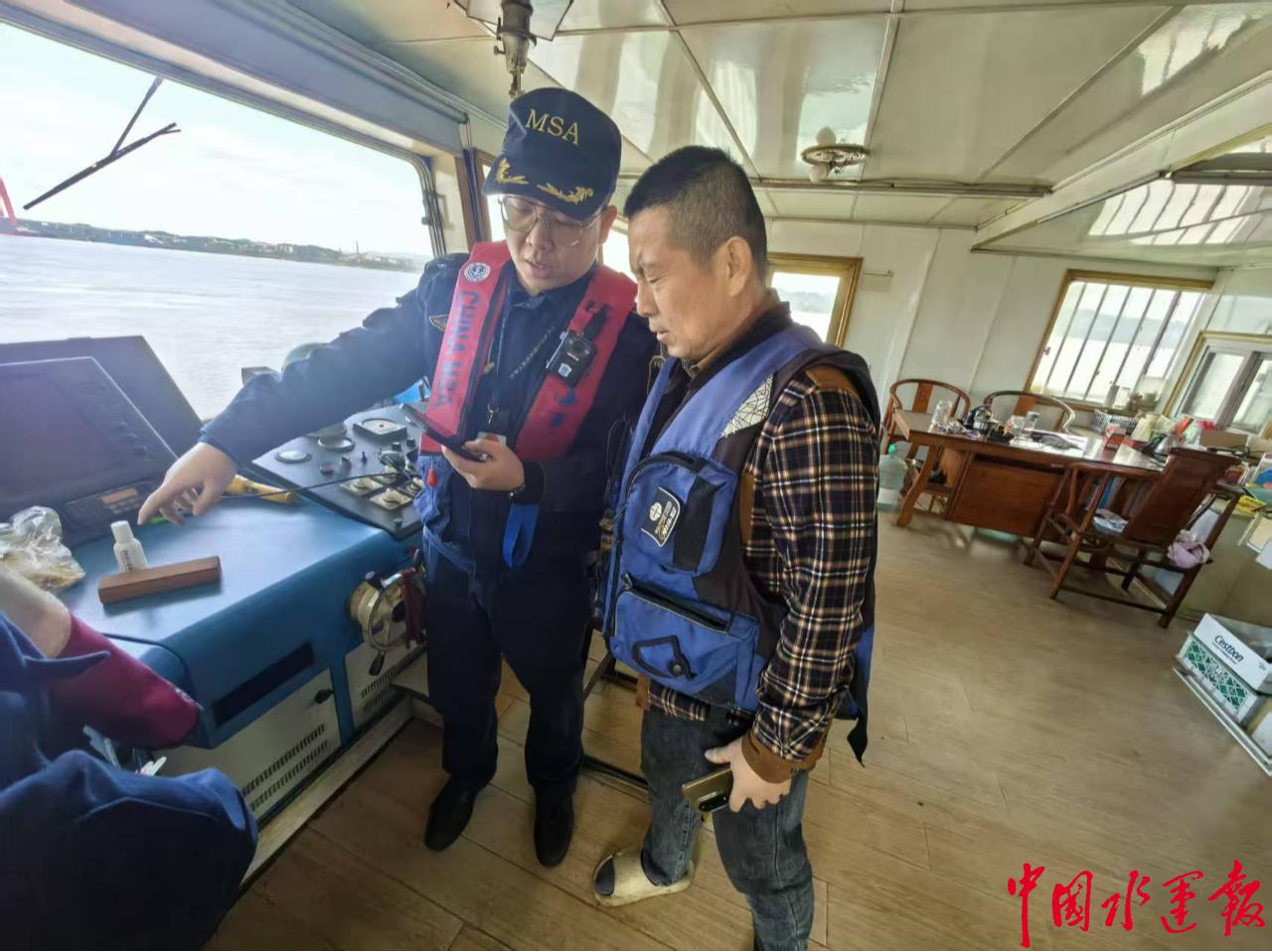 执法人员的思想认识和入沪船员的申报工作是基础,是前提,船舶安全是打好“进口博览会水上安全保障”的关键一招。在安检现场,蕲春海事执法人员严格对照《入沪船舶专项安全检查项目表(内河船)》,对船舶动力设施、消防安全设施、防污染设备等8大类56项内容实施“过筛式”检查。对安检中发现的缺陷现场向船方告知,耐心讲解缺陷整改的重要性并要求其尽快整改,确保船舶适航、船员适任。同时,执法人员还及时提醒船方在开航前及时通过“海事通”APP报送并核对入沪专项安检信息,认真比对船舶、船上人员、载货信息,发生变化时要及时更改。