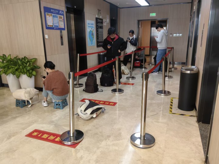 滨江图书馆上午9点开门。8点半,7楼图书馆门口已经排起了队。