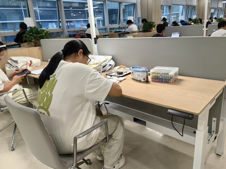 萧山图书馆有四层,每一层都有不同形式的座位,有单人的包间,多人的会议桌等。沙漏只在元驿站使用,但使用频次不是很多。元驿站自习室设在一楼,进出比较方便,所以座位比较抢手。