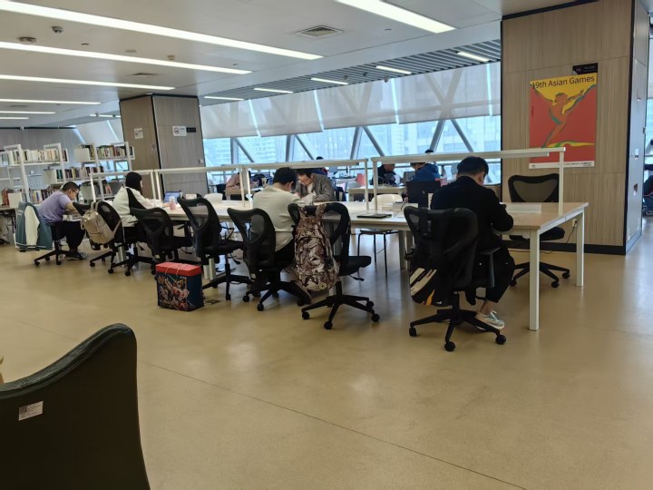 曙光路上的浙江图书馆,双休日和节假日座位十分抢手,工作日座位就空得多,上午10点一楼自习室还有一半空座。