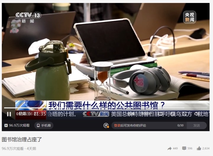 央视在专题报道中说,越来越多人去图书馆看书学习,但“占座”频频出现,对此,多地图书馆开始出台针对性措施。