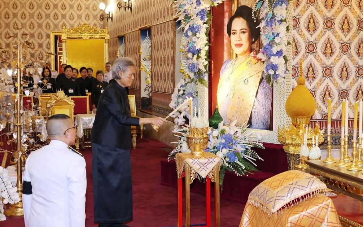 诗丽吉一儿三女儿为母亲守灵!10月27日诗丽吉太后的四个子女一起为母亲守灵,泰王穿着黑色高定西服很绅士,头发变得又黑又亮,应该是为了上镜染发,相比第一天看起来精神状态还不错。 太后的三个女儿,就数大女儿乌汶叻状态好,长发盘起高贵发髻非常的高贵,而且黑色发色不显老,反观诗琳通公主是自然老去,满头白发穿黑衣,一看就是老太太了。 值得一提的是小公主朱拉蓬不服老,长发飘飘还烫着卷发,看起来时髦不失女人味,可惜身体不好,坐在轮椅上为母亲守灵,是王太后四个子女中唯一一个体弱多病的孩子。