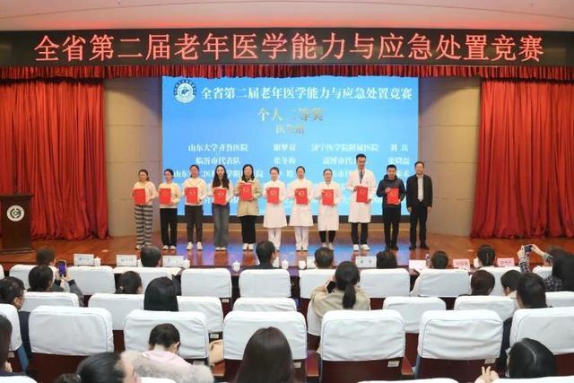 本次竞赛汇聚了全省31支精锐队伍、124名专业医护选手同台竞技。滨州医学院附属医院老年医学(保健)科副主任马慧教授担任领队,带领由齐洁、杨倩倩两名医生与周艳芬、王金晓两名护士组成的医护代表队参赛。竞赛内容紧密围绕老年医学与急救领域,涵盖老年急危重症基础理论、急诊急救操作技能以及团队现场应急处置等多个环节,全面检验参赛选手对老年常见疾病的诊断与治疗能力、急救技术操作的规范性与熟练度,以及面对突发状况时的应变能力和团队协作精神。