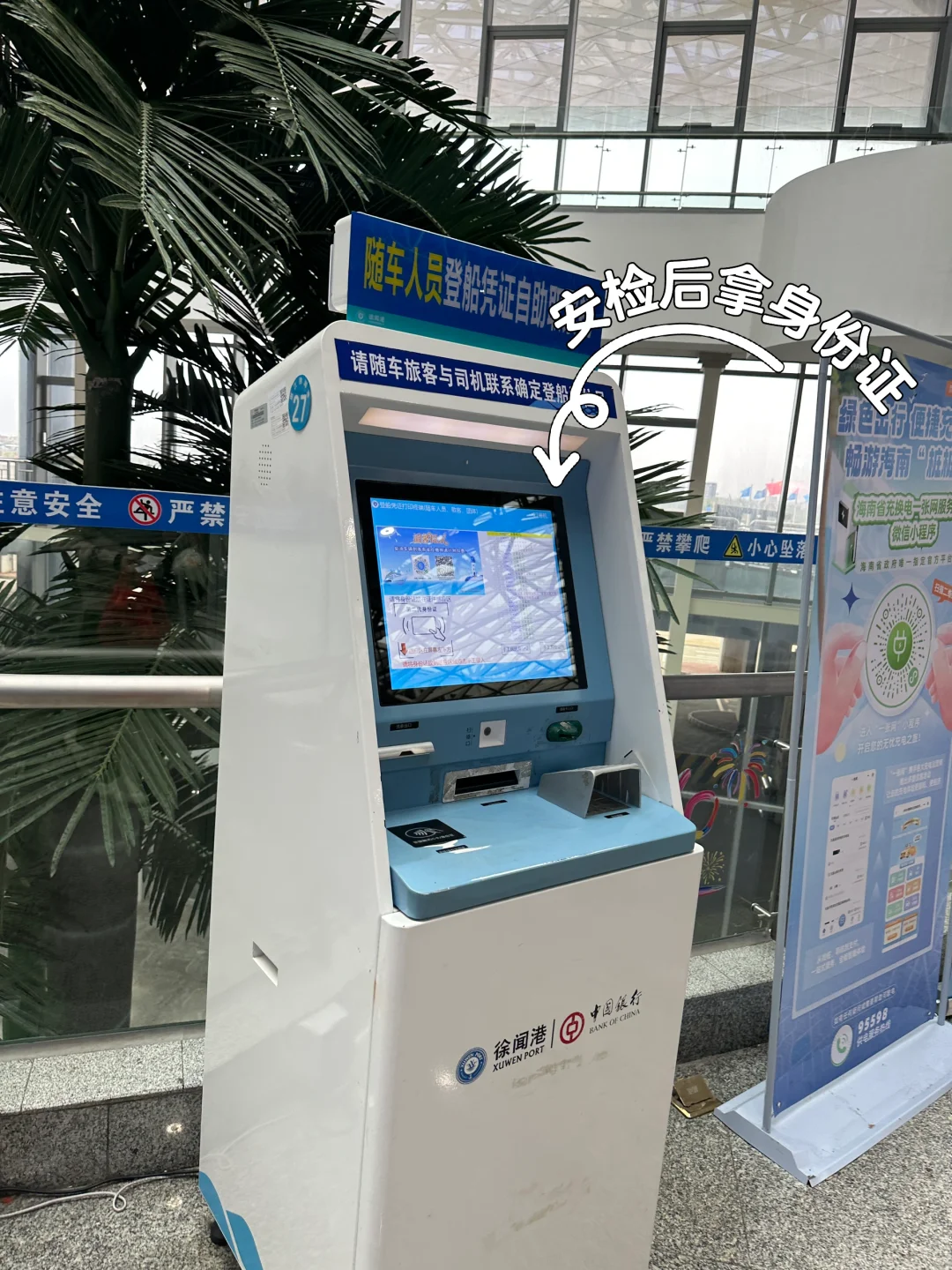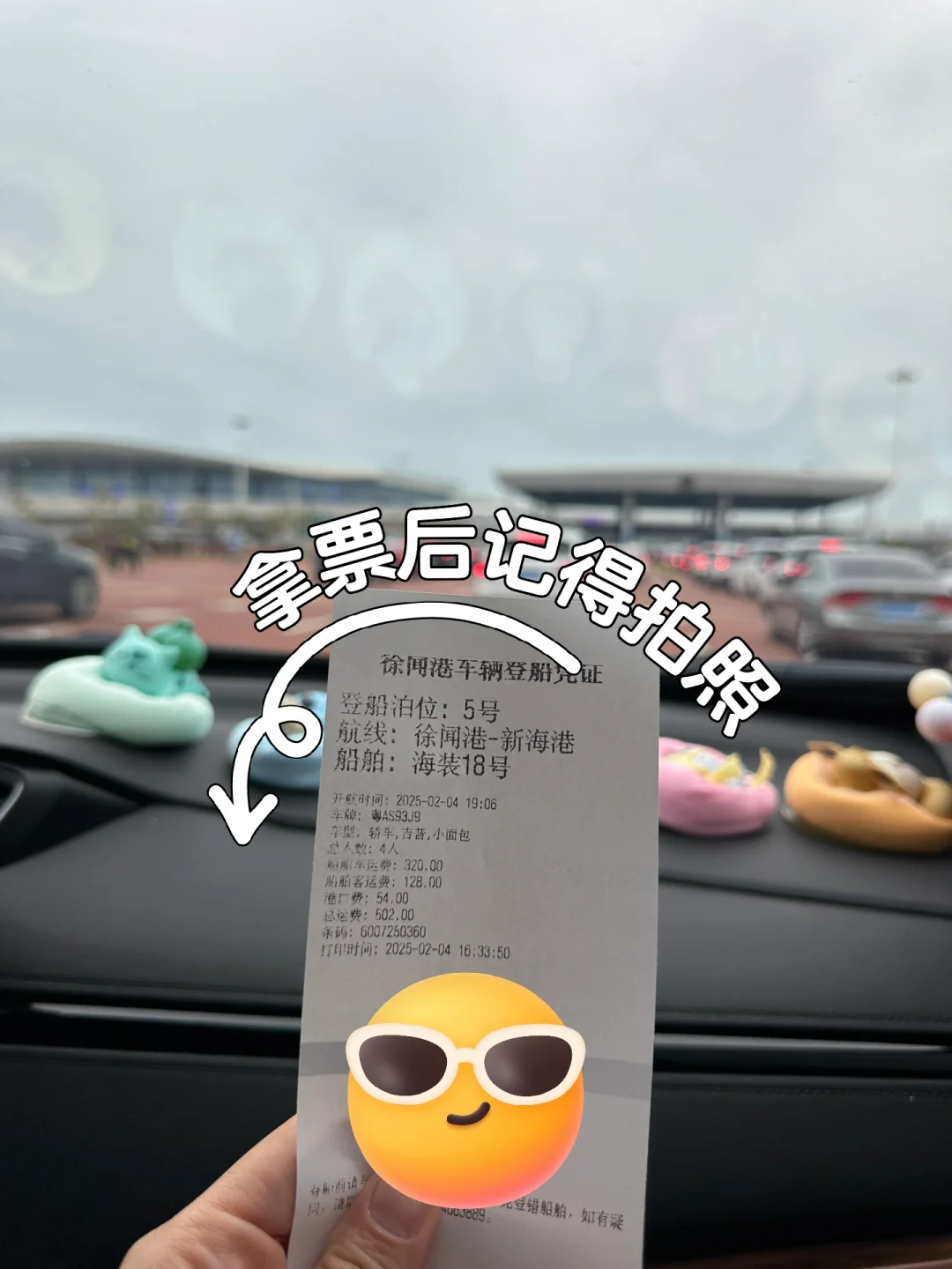 4️⃣ 图4,过了第一个关卡后,准备好要带上船的身份证!充电宝,零食,外套等,马上要人车分离,只有司机待在车里