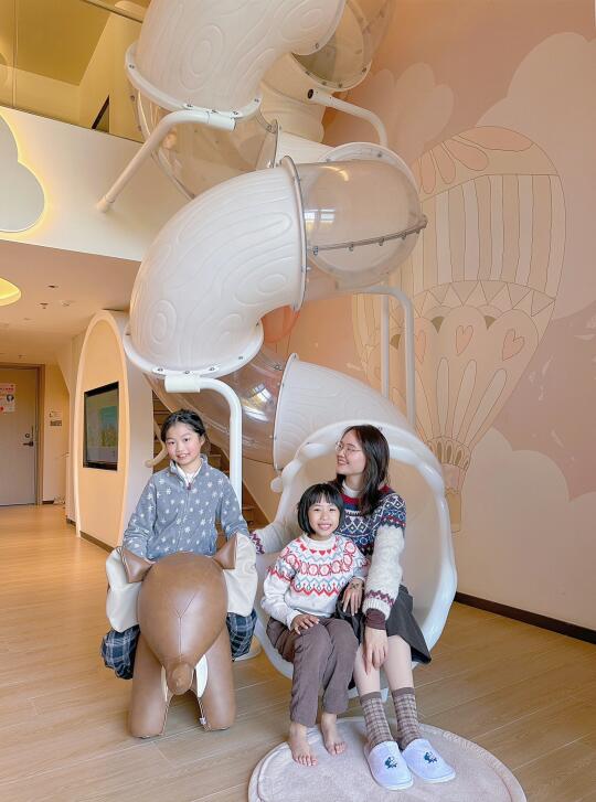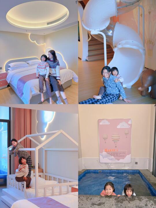 🏩我们这次住的是带独立泡池的精灵城堡复式loft,有两张1.8m大床+1张1.2米小床,两大两小住着很宽敞,那个滑梯太棒啦,不出房间都能玩一下午🛝