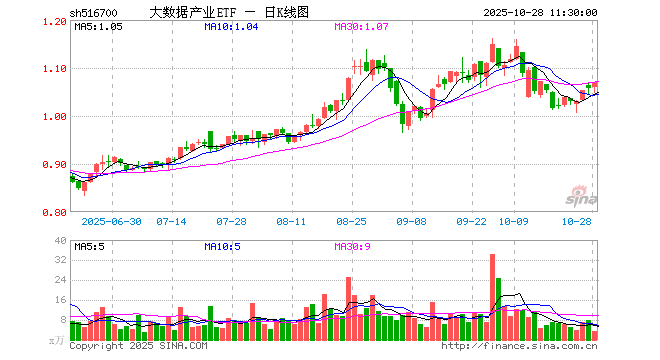 10月28日,截止午间收盘,大数据产业ETF(516700)涨1.14%,报1.069元,成交额349.03万元。大数据产业ETF(516700)重仓股方面,中科曙光截止午盘涨0.00%,科大讯飞涨2.23%,浪潮信息涨1.49%,恒生电子涨0.43%,紫光股份涨0.32%,润泽科技涨1.37%,拓维信息跌1.19%,中国长城涨0.12%,中国软件涨2.21%,用友网络涨3.30%。