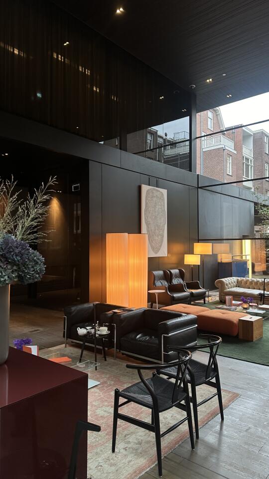 因为去买雪茄发现了这个宝藏酒店,这座老建筑19世纪曾是家银行,后来又作为音乐学院,现在由Porto Lissoni改造成酒店,大堂全是艺术品家具,出门就是梵高博物馆。