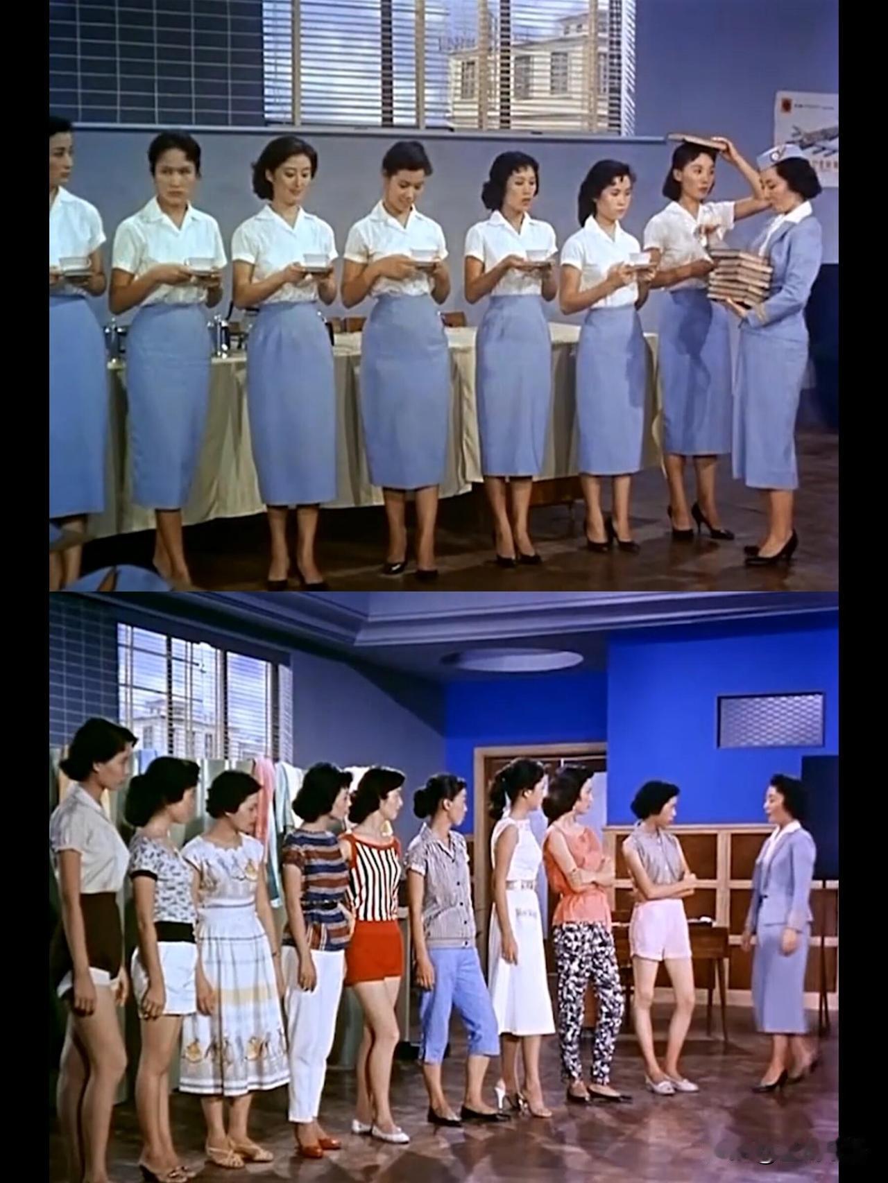 天!50年代的空姐穿搭, 现在看也是超绝! 翻看1959年的香港电影《空中小姐》, 直接被戳中审美! 当年航空业刚兴起, 空中小姐可是港姐最向往的职业。 葛兰、叶枫她们演的空姐, 一出场就惊艳了。 电影里前半段讲空姐训练, 跟着学站姿、练微笑,看得人好新鲜。 还有新加坡、曼谷、台湾的外景, 配上连场歌舞, 像开了场50年代旅行盲盒。 最绝的是穿搭! 利落的制服、衬气质的裙装, 明明是几十年前的款式, 却一点不土气。 葛兰笑起来眼弯弯, 穿制服的样子又甜又飒, 这才是真·气质女神啊! 原来半个多世纪前的时尚, 就这么有味道。 想想看对比此时的内陆, 那么多人拼命想出国也不奇怪了[捂脸] 谁懂啊! 现在就想翻出这部老电影, 再看一遍她们的“空中时髦秀”! 空姐职业制服 空姐穿搭 老照片
