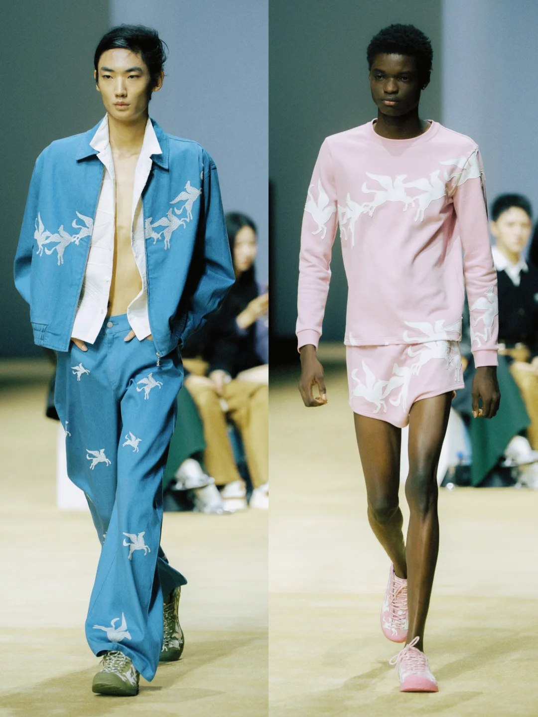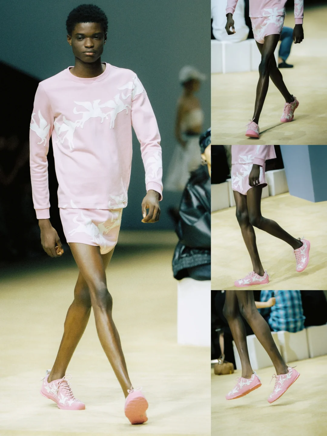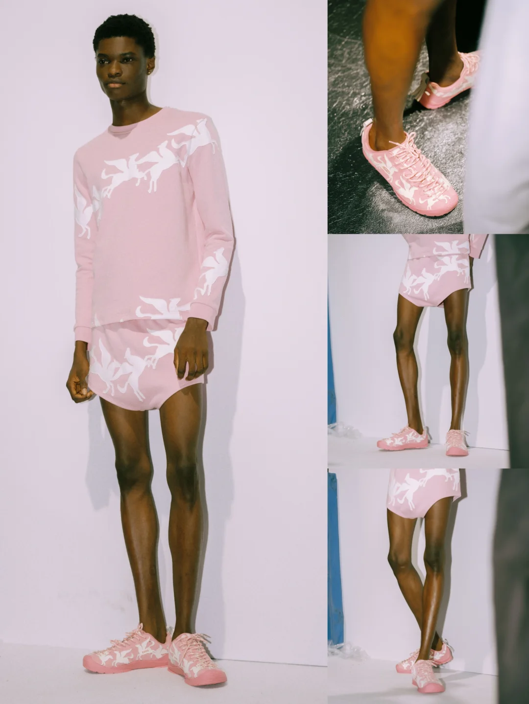 8on8昨晚那场奔跑的秀太欢乐了吧,模特们以奔跑的形式入场,简直不要太松弛了,而秀场中模特们上脚的keen与8on8马年联名款鞋也格外吸睛,苔藓绿和雾霾粉两个配色,复古又明亮,鞋面上的飞马图案生动又特别,这波跨界联名真的狠狠期待了~还有奔跑中模特穿的seek越野跑鞋,和现场氛围也好搭!