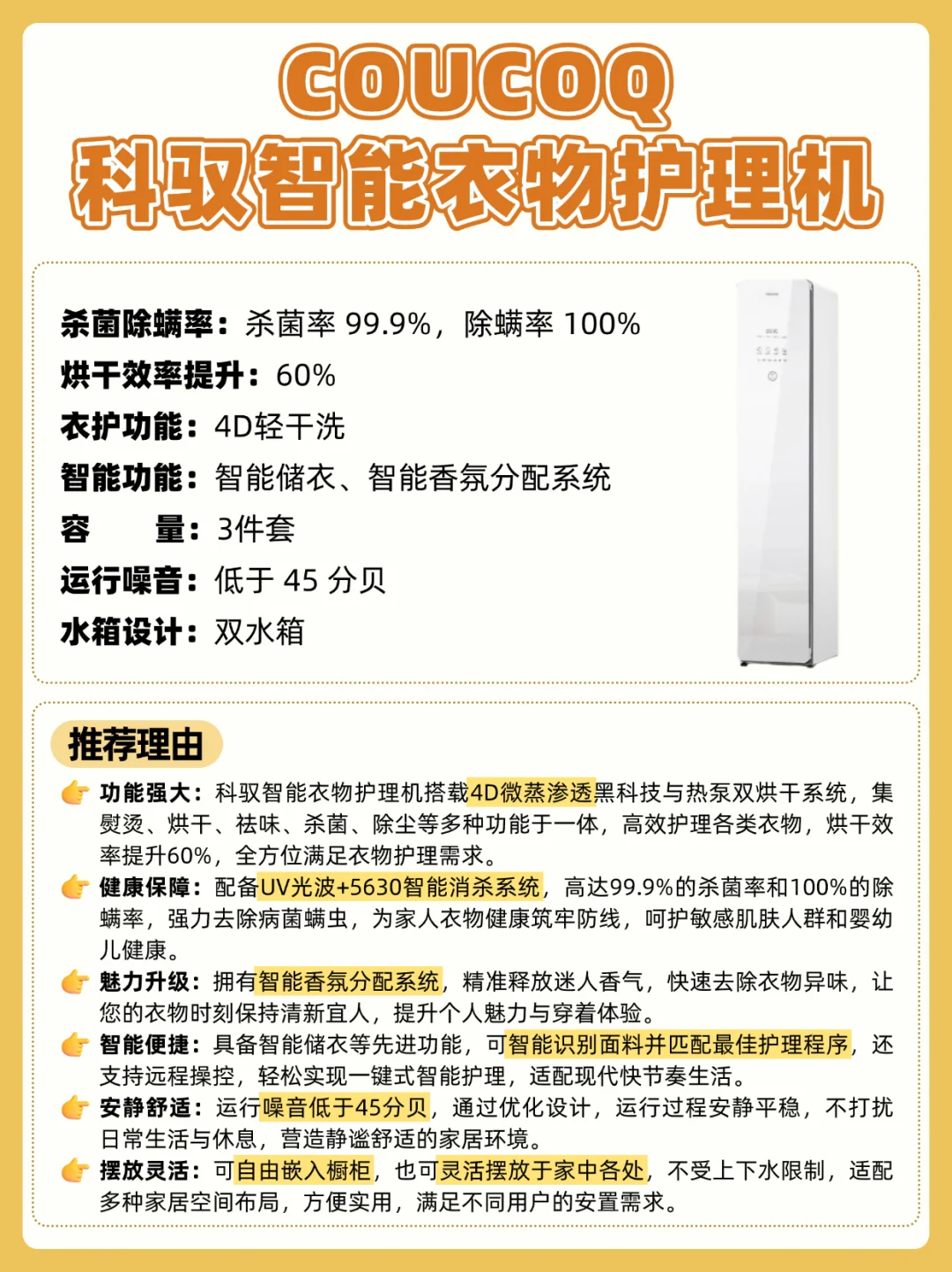 无论是追求品质生活,还是注重家人健康,科驭智能衣物护理机都是不二之选。家人们也可以像我一样直接入手,开启精致居家衣物护理之旅啦!