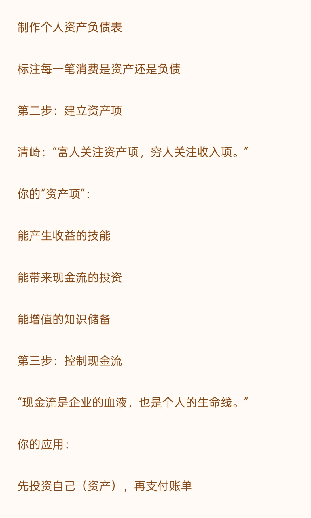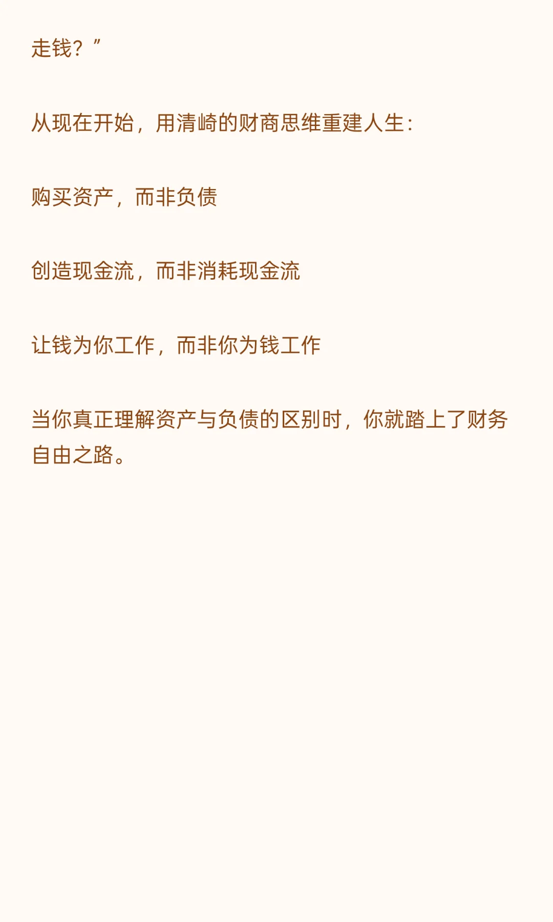 资产与负债 金融知识 如何摆脱贫穷 财务自由 让钱为你工作 财商 成为有钱人 财富管理