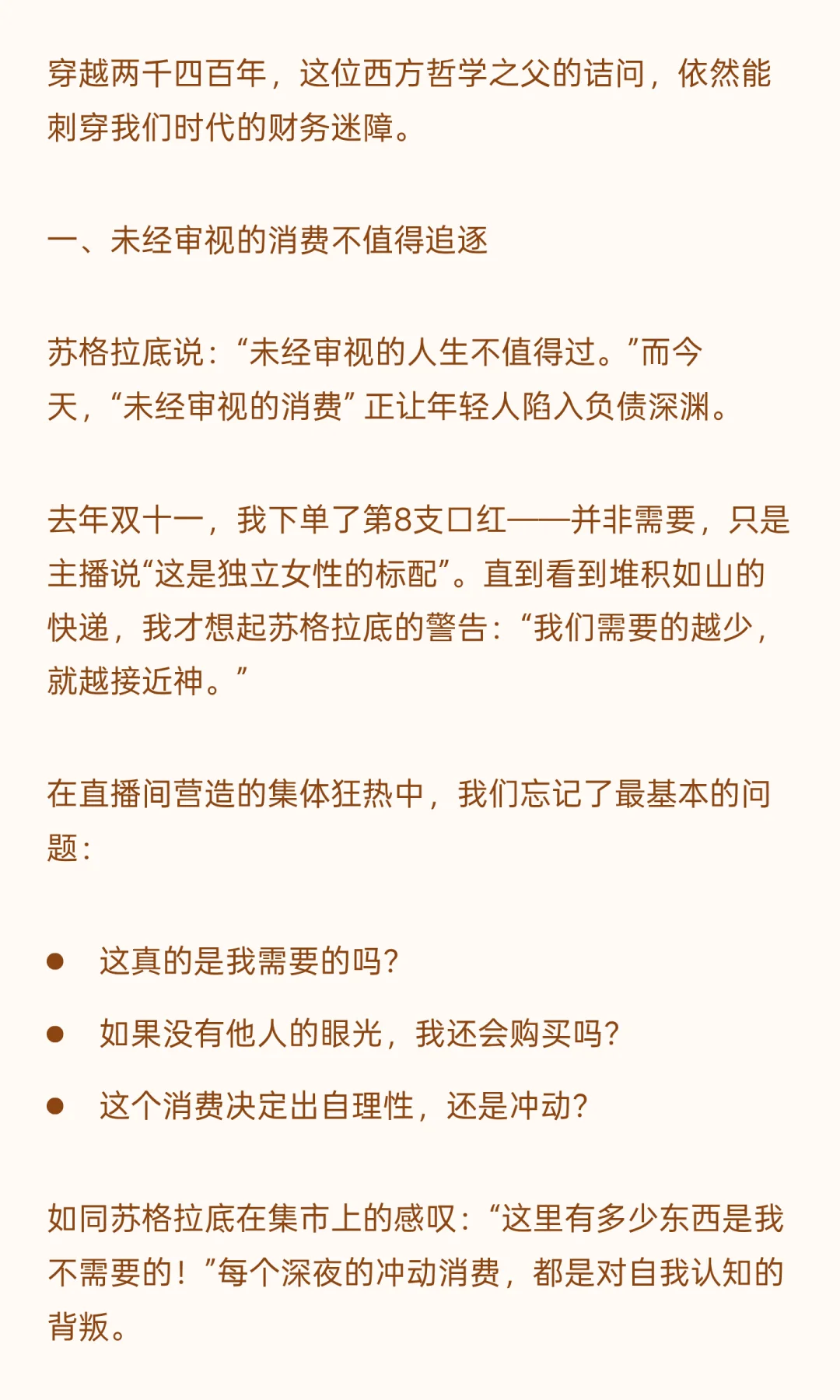你不是真的缺钱:苏格拉底在雅典街头痛斥当
