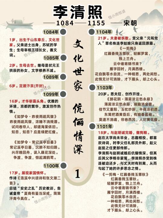 李清照生于书香世家,自幼聪慧过人,年少时一首《如梦令·常记溪亭日暮》横空出世,