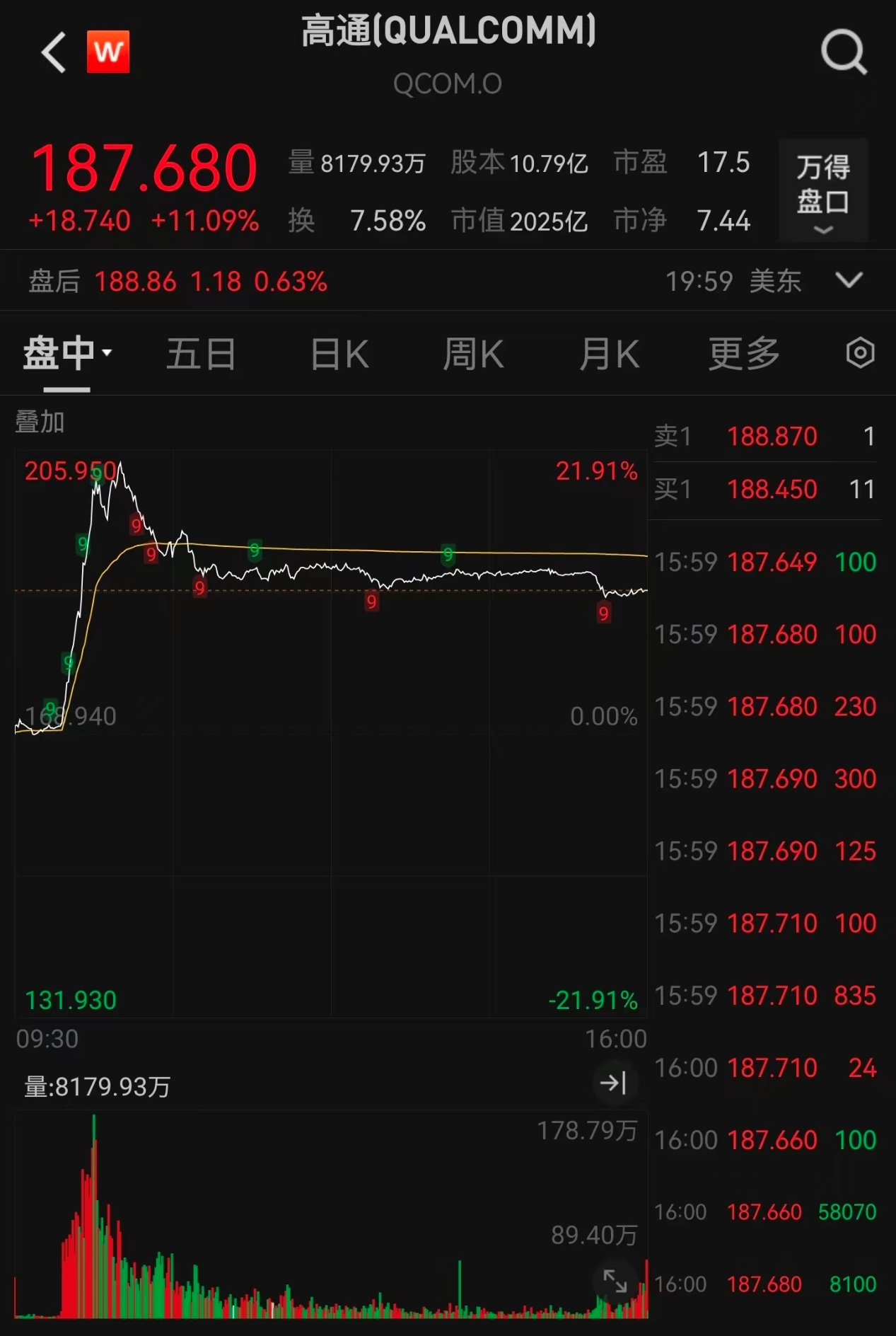 上证报中国证券网讯(记者郑维汉)当地时间10月27日,高通推出面向数据中心的下一代AI推理优化解决方案——基于高通AI200和AI250芯片的加速卡及整机柜产品,并预计于2026年和2027年分别实现商用化。截至当日美股收盘,高通涨幅超11%。