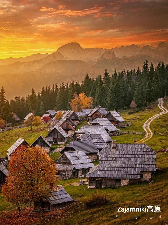 ✅ Zajamniki高原:传统木屋点缀金色草坡,与远处群山交相辉映,宛若童话秘境。