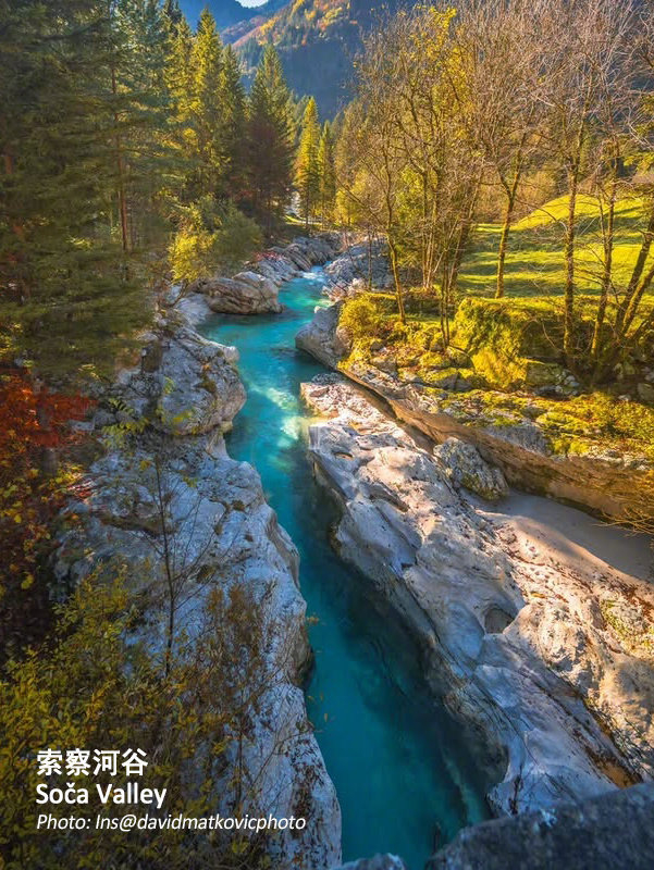 ✅ 索察河谷(Soča Valley):碧绿如翡翠的河流蜿蜒其中,峡谷、吊桥与激流探险让这里成为户外爱好者的圣地。
