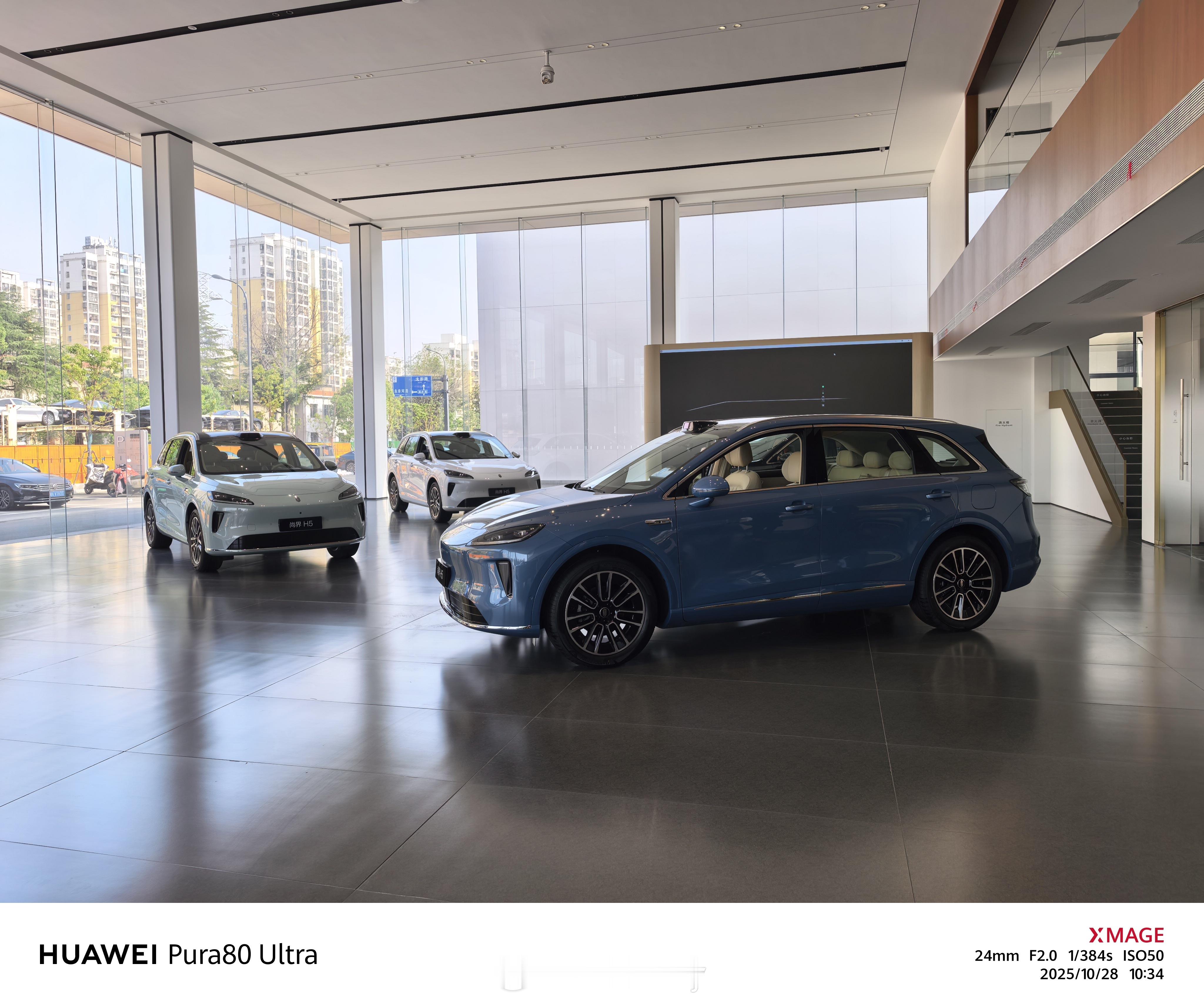 鸿蒙智行尚界排面满满,独立门店+交付中心很有气场,在这可以一次看遍所有颜色。尚界