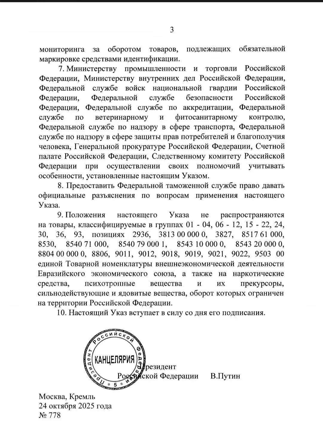 普京总统令!西线即将开通! 这是一份俄罗斯联邦总统签署的关于俄哈边境海关监管特殊性的政令,核心是规范特定货物在俄哈边境的进口海关流程,以下是关键内容解读: 一、适用范围与核心许可 • 适用期限:2025年12月10日前 • 适用货物:由哈萨克斯坦、吉尔吉斯共和国经俄哈边境(俄联邦段)通过汽车运输,且收货方为俄罗斯法人的货物 • 特殊许可:此类货物进口可豁免欧亚经济联盟货物资质证明、豁免欧亚经济联盟及俄联邦法律要求的标识/信息标注,但需满足政令第2、3款的条件 二、运输方义务(第2款) 运输上述货物时,运输方需向俄联邦海关机关提交收货方出具的书面文件,文件需明确:收货方需按《俄联邦海关监管法》第104条规定的程序申报货物。 三、收货方义务(第3款) 收货方需完成以下事项: 1. 将货物运输、存放至俄海关指定的临时仓库; 2. 向俄工业和贸易部提交自身法律形式、纳税人信息(用于后续货物标识标注); 3. 对临时仓库内的货物,按俄法律要求完成标识/信息标注; 4. 2025年12月27日前,按《俄联邦海关监管法》第104条完成货物的海关申报及其他海关手续。 四、其他核心规则 1. 海关职责:俄海关需配合运输上述货物的运输工具通行; 2. 合规性说明:符合本政令的货物进口,不视为违反海关义务或货物标识义务; 3. 信息上报:俄工业和贸易部需将此类货物的流通信息录入国家信息系统,以监控需强制标识的货物; 4. 部门协同:俄工贸部、内务部、国民近卫军等多部门在履职时,需考虑本政令的特殊规定; 5. 解释权:联邦海关局获得本政令适用问题的官方解释权; 6. 排除适用货物:部分商品(如特定税则号列货物、欧亚经济联盟原产货物、违禁品等)不适用本政令; 7. 生效时间:政令自签署日(2025年10月24日)起生效。 该政令的核心是在特定期限内,简化俄哈边境特定货物的进口海关流程,同时通过后续申报、标识等要求保障监管合规。 中俄物流 俄罗斯专线物流中俄边境 哈俄边境