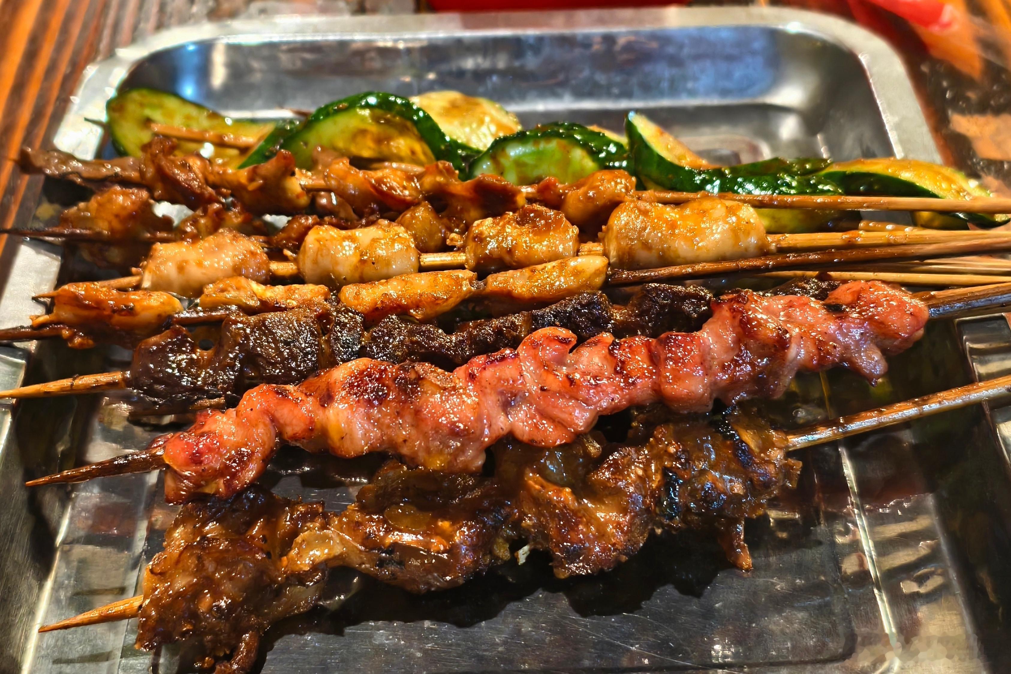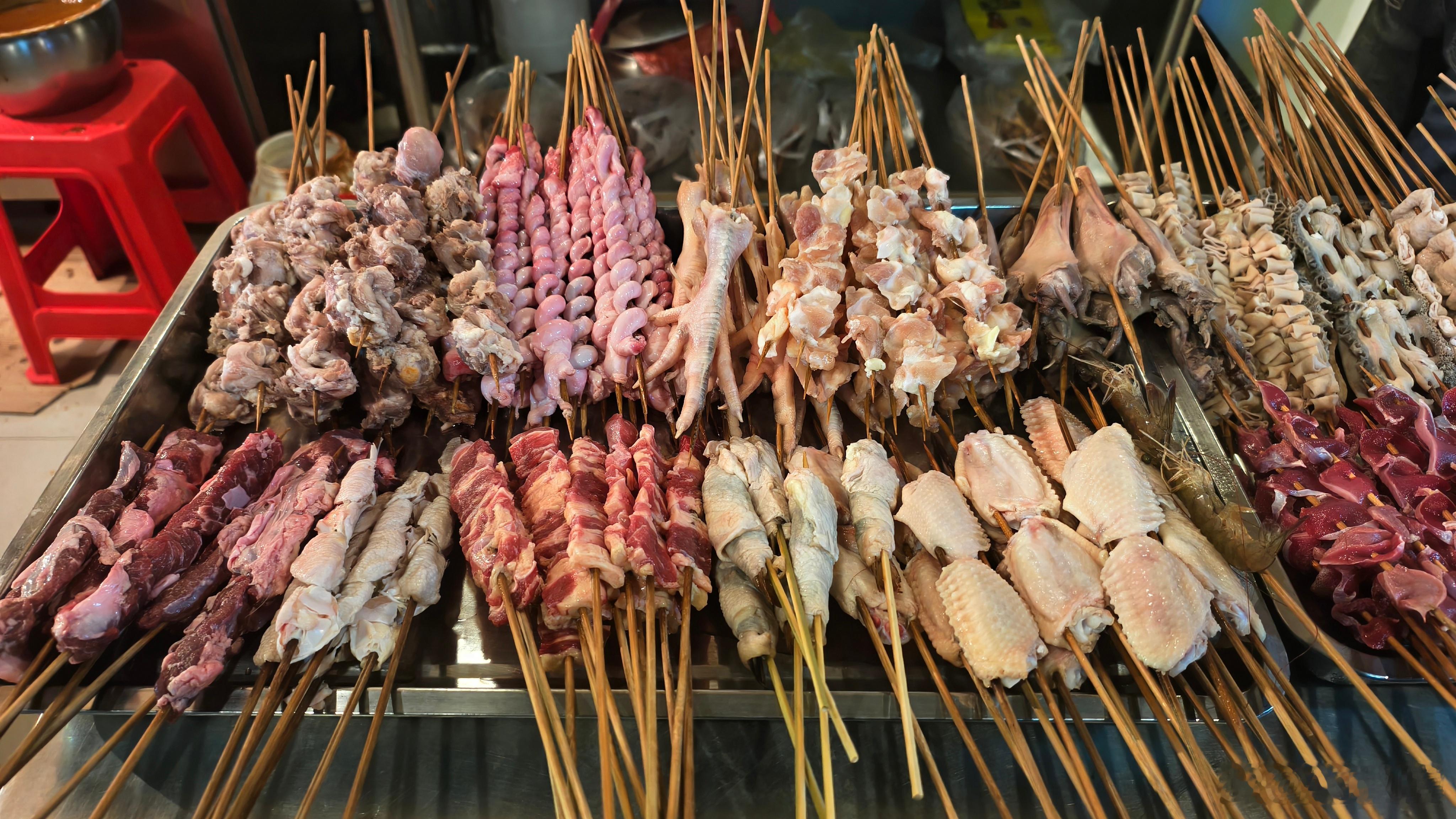 此时斟满劲酒,琥珀色酒液带着草本醇香,入口温润不烈。顺着烤肉的鲜辣渗进舌尖,既中和了炭火的燥感,又化解了酱料的厚重,让肉质的鲜嫩更突出,连带着酸嘢的清爽都更有层次。