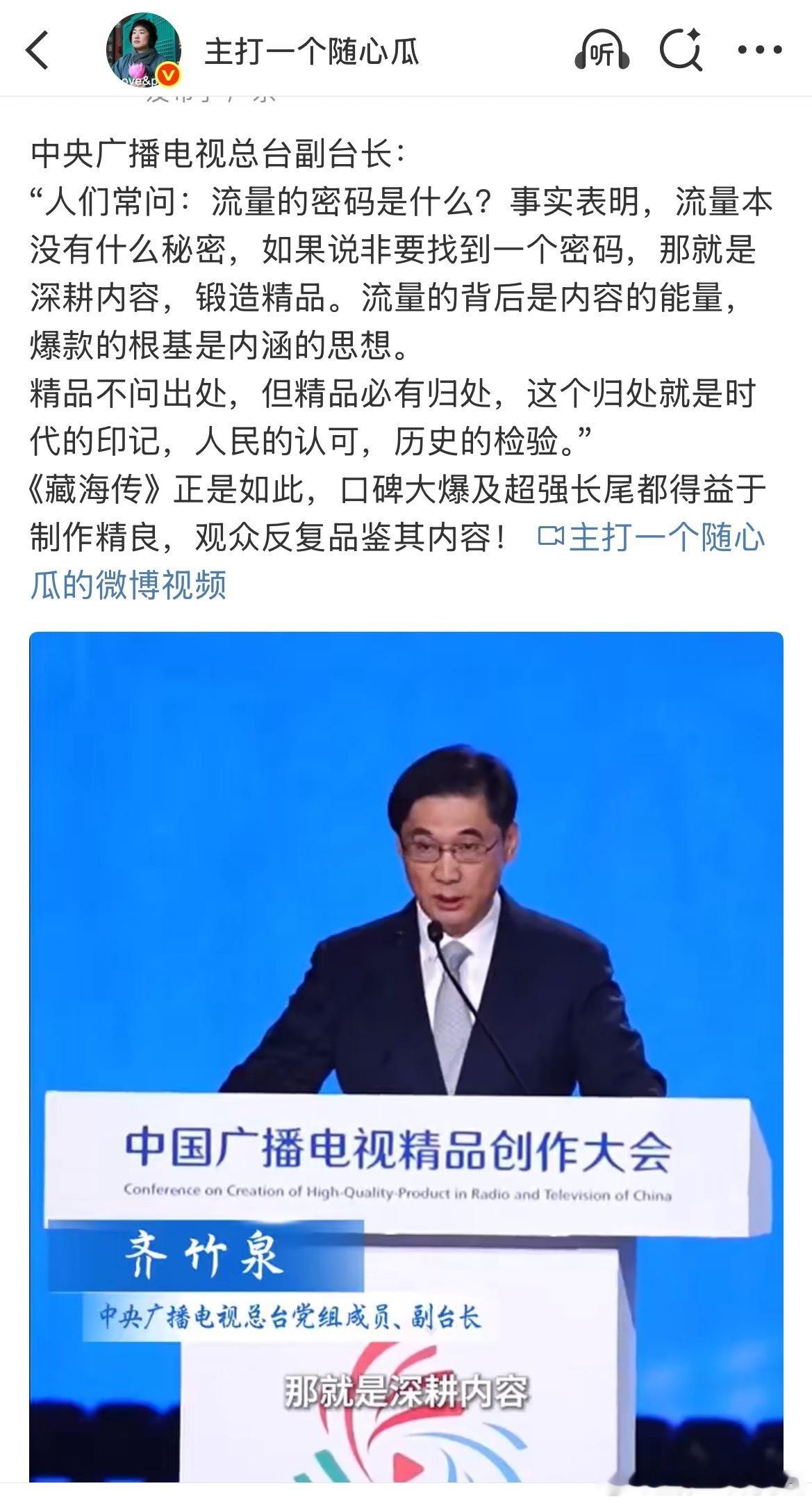 环球网发文评《藏海传》让非遗被更多人熟知,让文化传承活起来!这也正是今天广北精品创作大会开幕式上所强调的深耕内容、剧情为王!