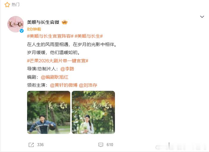 黄轩刘浩存《美顺与长生》官宣引发关注,官宣海报的设计紧扣故事内核,传递出的温情与