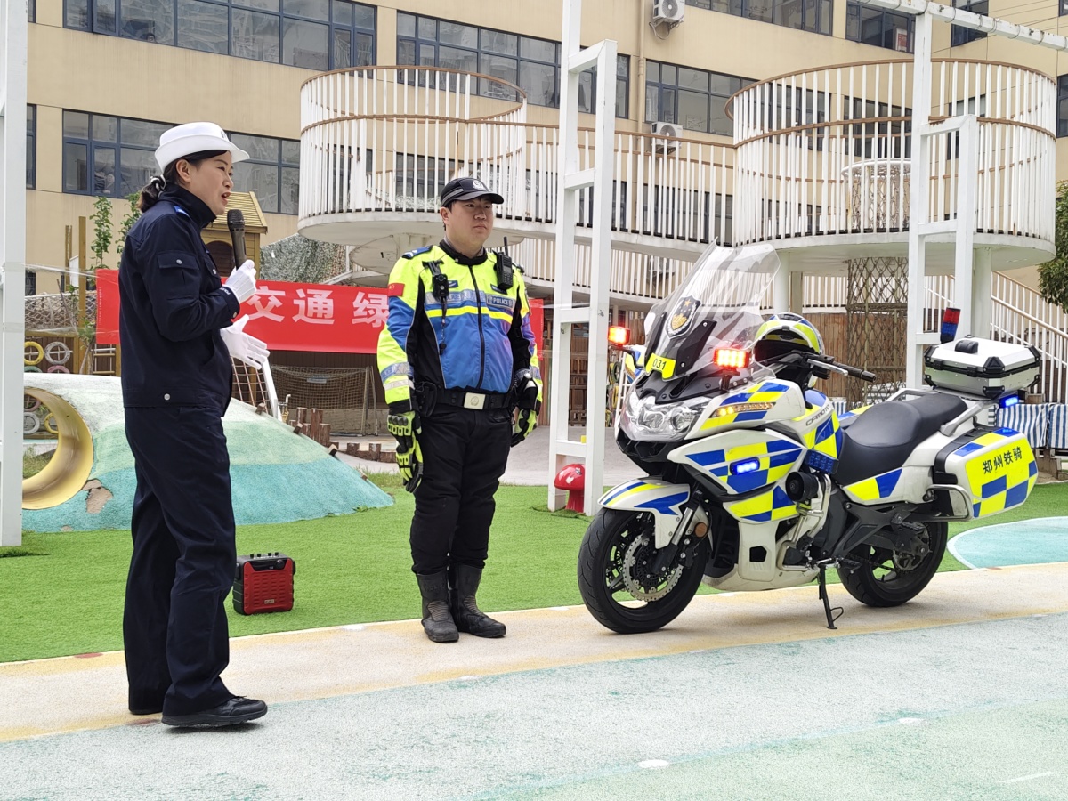 10月23日,郑州市管城回族区砖牌坊街幼儿园附属紫荆幼儿园迎来了一场特别的“交通安全启蒙课”,郑州交警四支队的铁骑队员们走进校园,用一场沉浸式互动体验,将交通安全的种子播撒进孩子们心中。