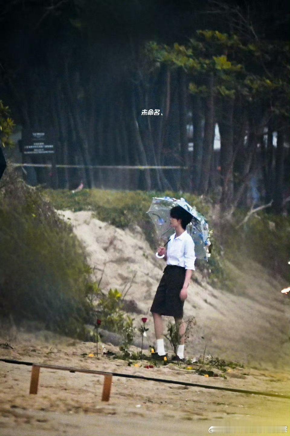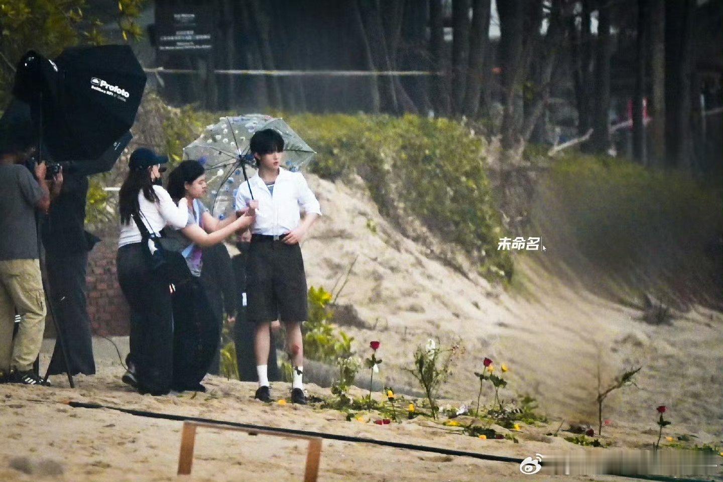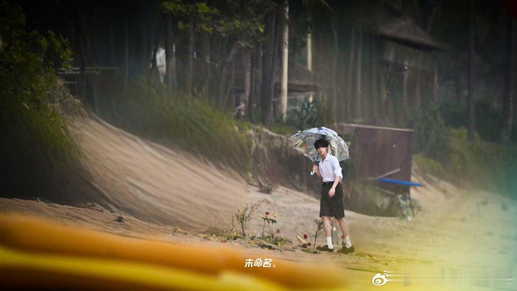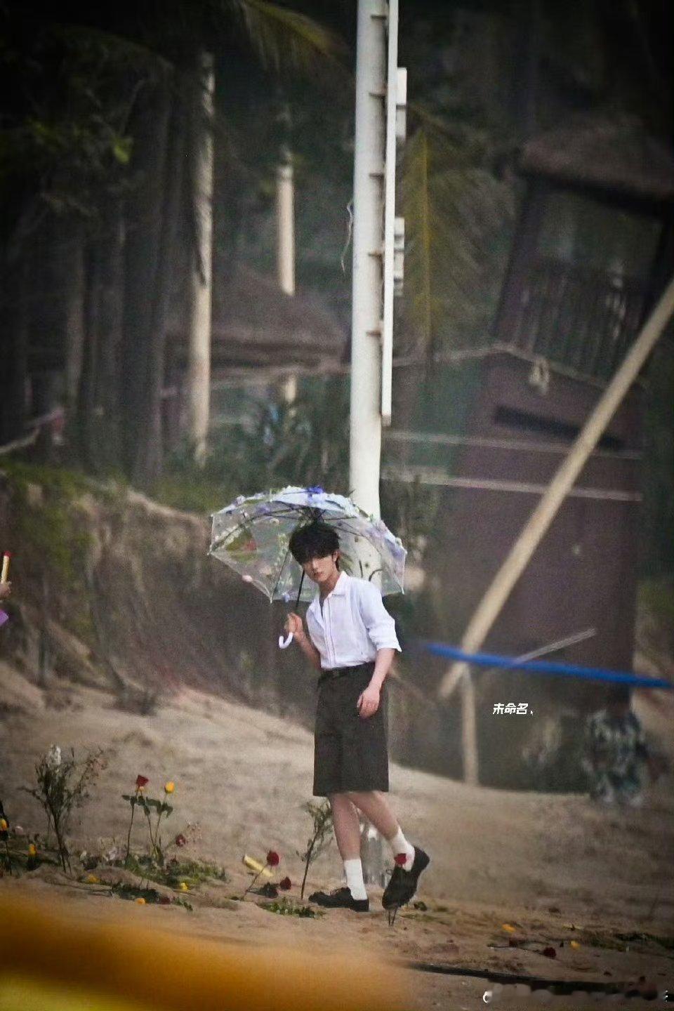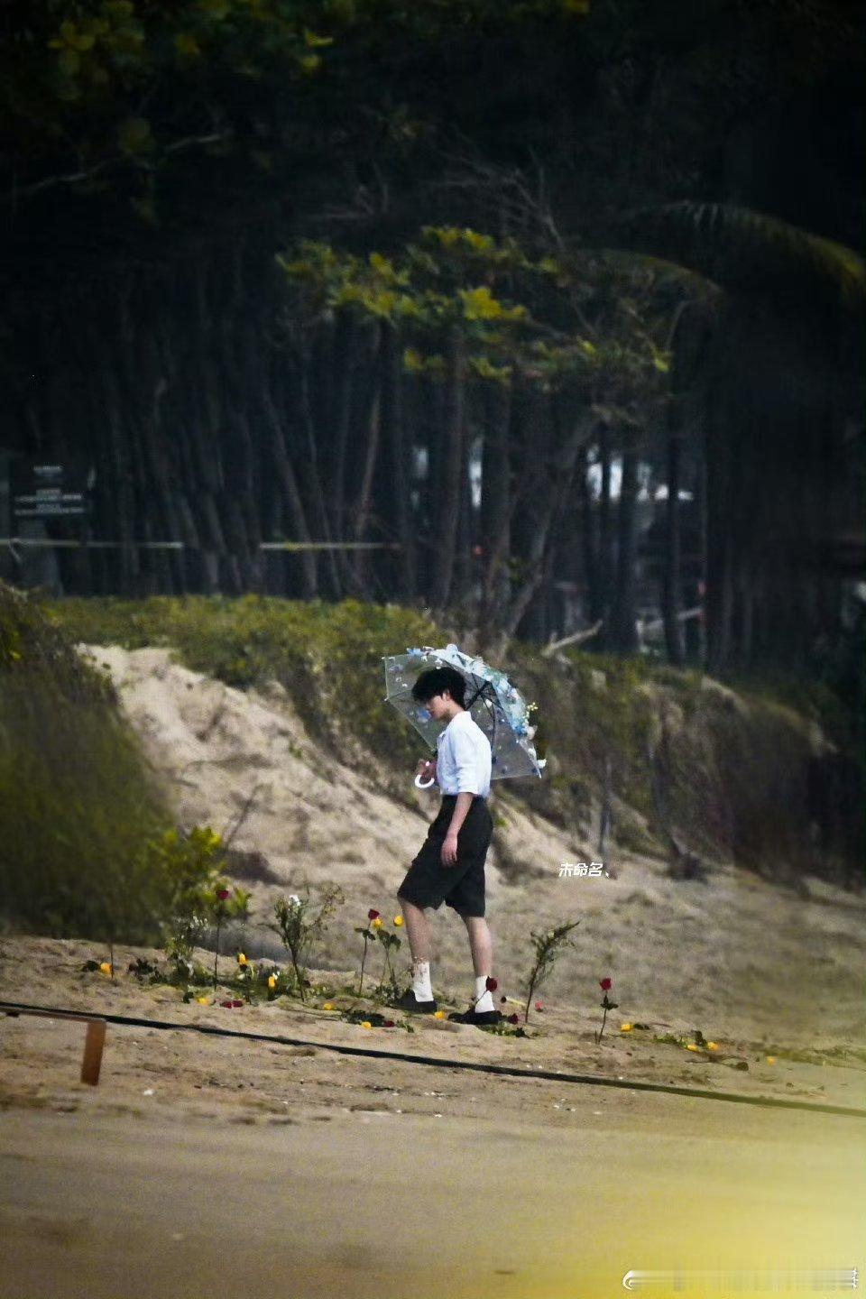 苏新皓海边拍摄,短裤衬衫打伞少年👦🏻,期待今晚ELLE