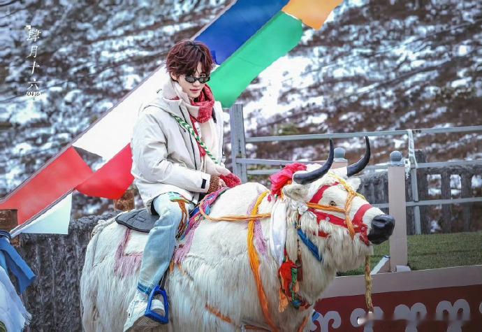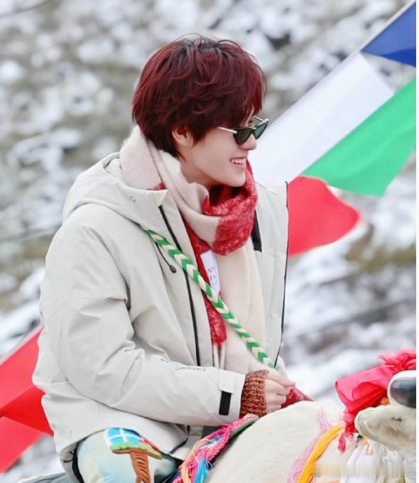 张真源跑男骑牦牛的路透引发关注,雪山背景下的场景很有氛围感,红发狼尾与牦牛、雪景