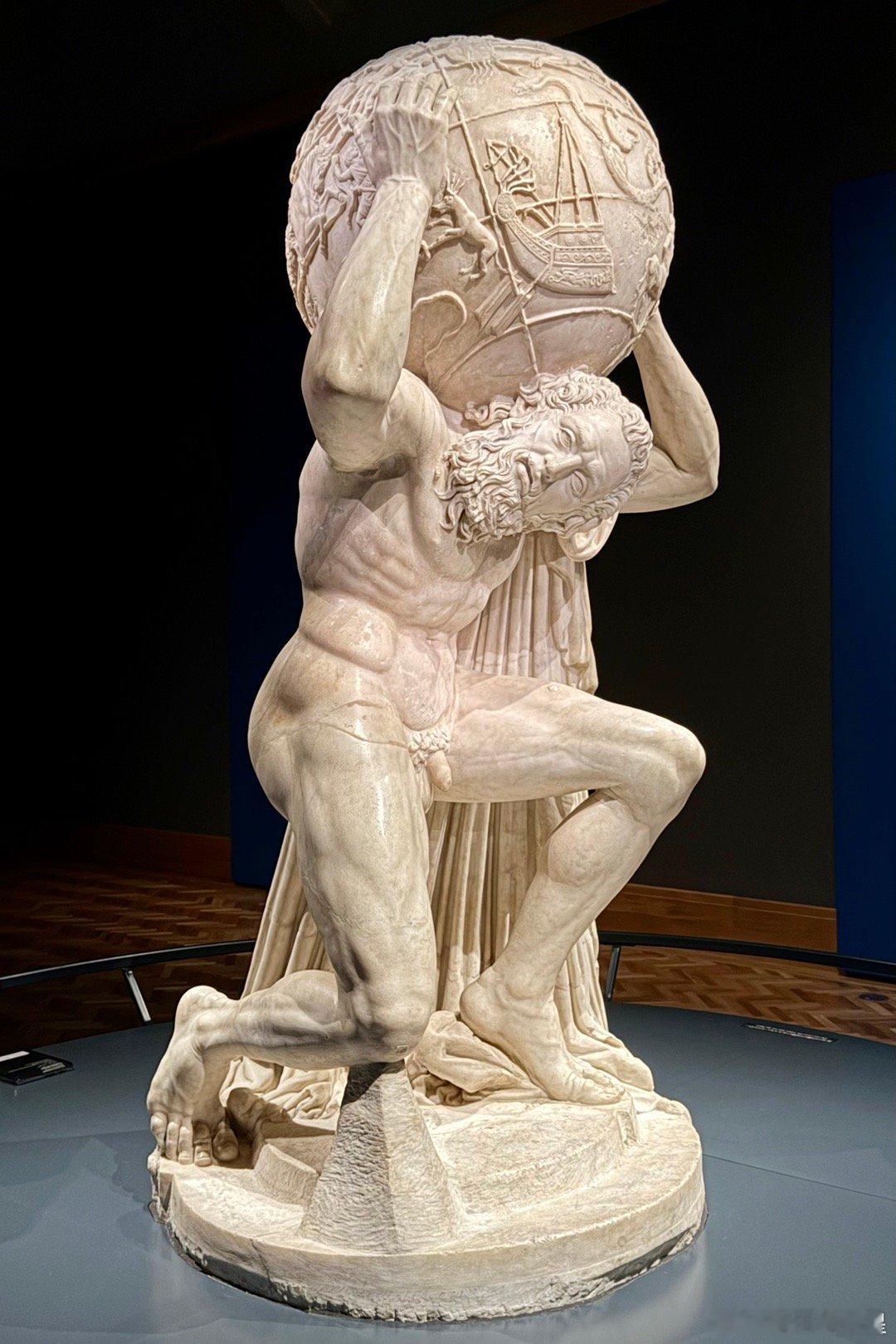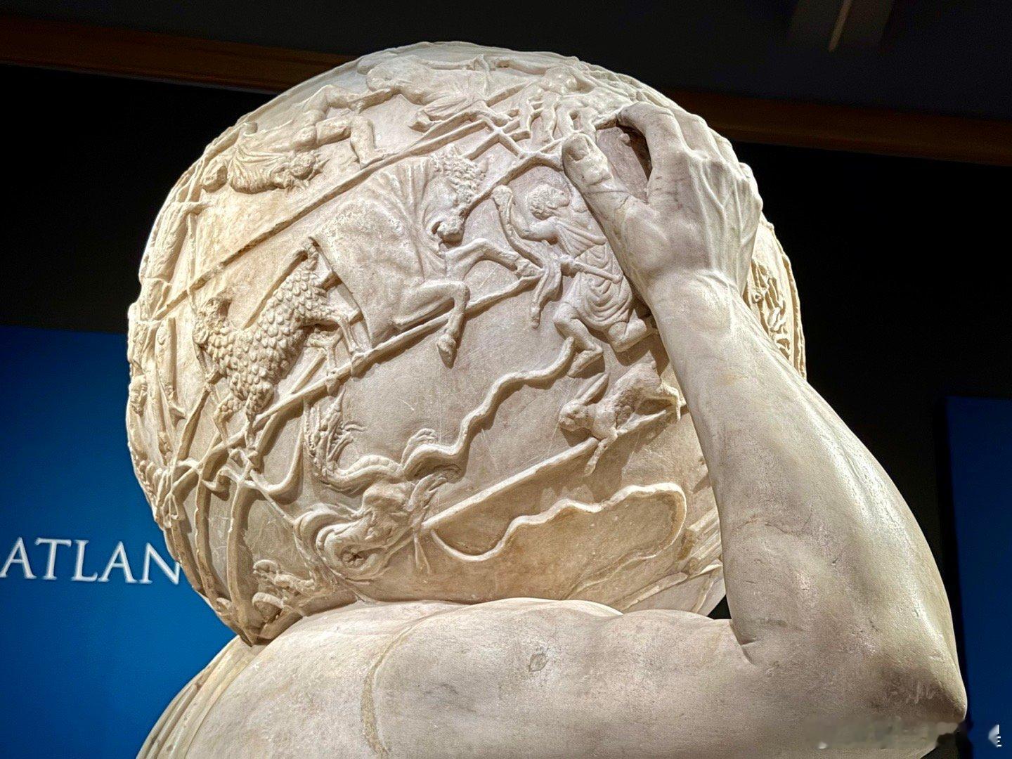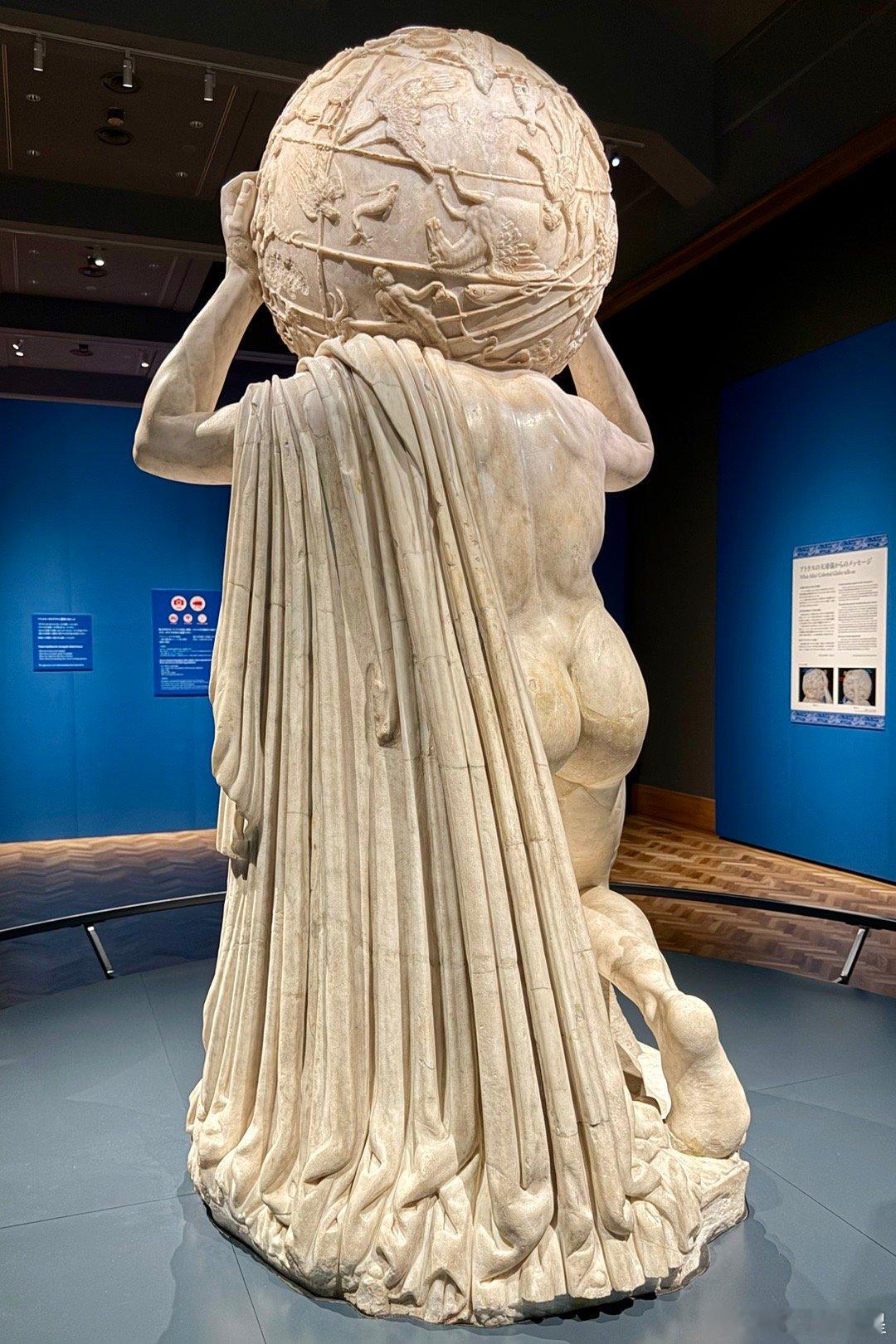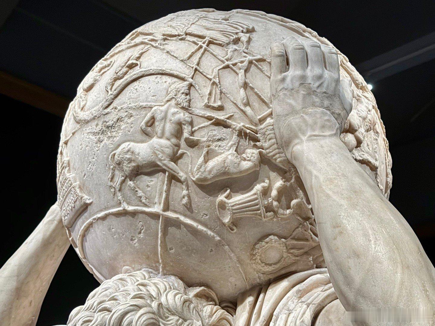 这尊大理石雕塑高约两米,重约两吨,描绘的是泰坦巨人阿特拉斯。根据希腊神话,阿特拉斯在与奥林匹亚诸神的战争中战败,并被判处永远支撑天空。所以他肩扛着一个雕刻有漫天星座的天球,这也是现存最古老的描绘天体星座的天球雕塑。