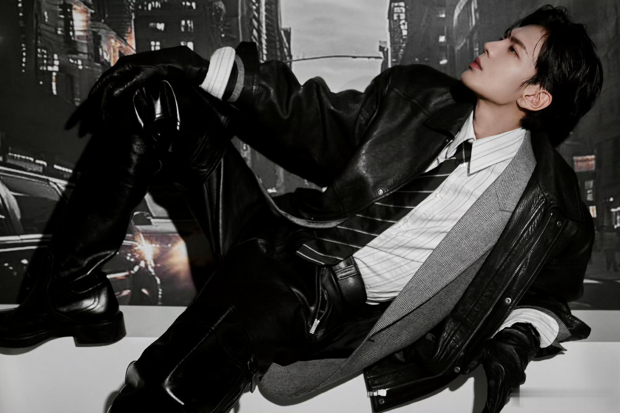 毕雯珺ELLE造型 毕雯珺ELLE盛典图🈶这味儿太正了!男模身高搭配大长腿,浑身散发出顶级腔调!湿发慵懒带感,allblack皮衣加长靴,媚魔你好👋