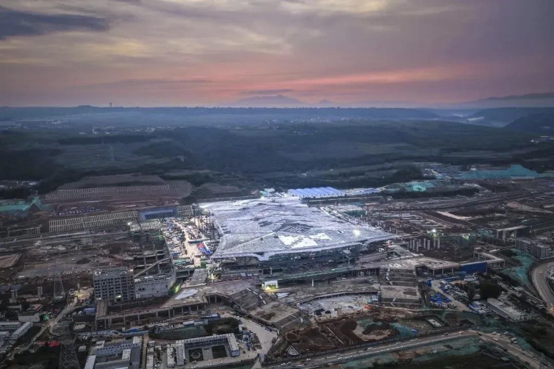10月27日,我国西部地区在建规模最大的高铁站——西安东站,随着最后一块重达4800吨的屋盖钢结构桁架精准提升至33米高空指定位置,站房主体结构顺利完工,正式全面转入金属屋面、幕墙及装饰装修阶段 。这座坐落于西安市高铁东城中央商务办公核心区的特大型枢纽,正以“科技+文化”的双重底色,加速勾勒西北交通新地标轮廓。 作为国家铁路网规划的关键节点,西安东站建筑总规模达39.4万平方米,设13台27线并预留城际场接口,涵盖西渝高速场、西武高速场、西康普速场等功能分区,未来将实现高铁、普铁、地铁、公交的无缝衔接 。值得关注的是,其接入地铁5、12、15、21号线,还通过东、西双广场分别服务普速与高速列车旅客,进一步优化换乘效率。 设计上,车站以“秦山渭水、丝路长安”为核心灵感,将地域文化与建筑美学深度融合。屋盖采用全国首例山脊组合造型斜交空间管桁架结构,400米长、293米宽的投影面积上,连绵起伏的菱形形态生动再现“八百里秦川”的壮阔地貌;站房立面则以流线型弧线勾勒丝绸飘动的轻盈姿态,钢拱与门厅桁架的衔接不仅解决了结构受力平衡难题,更呼应了丝绸之路起点的文化寓意 。这种“建构一体”的设计思路,让外露的钢结构主受力构件成为空间核心元素,既体现“重结构、轻装饰”的理念,又实现了功能与美学的统一 。 工程建设中,中铁建设集团的团队用技术创新破解了多重难题。面对屋盖高低落差11米、1.2万个焊接节点密集分布的挑战,他们创新采用“分区整体提升”方案,将总重约1.5万吨的钢结构桁架分段吊装,使施工效率提升近30% 。同时自主研发的全景智慧建造平台,结合“5G+北斗”高精度定位技术,实现对11万余根钢结构构件的全生命周期管控,将安装焊接误差控制在毫米级 。 按照规划,西安东站预计2026年6月与西十、西康高铁同步投用,届时年旅客发送量将突破3650万人次。这座枢纽不仅能有效分流西安北站的饱和客流,填补西安东部及南部高铁线路空白,更将成为支撑内陆改革开放新高地、推进西部大开发新格局、助力“一带一路”高质量发展的重要交通支点 。随着它的建成,西安“五站布局”的客运系统将进一步完善,这座古城也将正式迈入“双高铁站”时代。